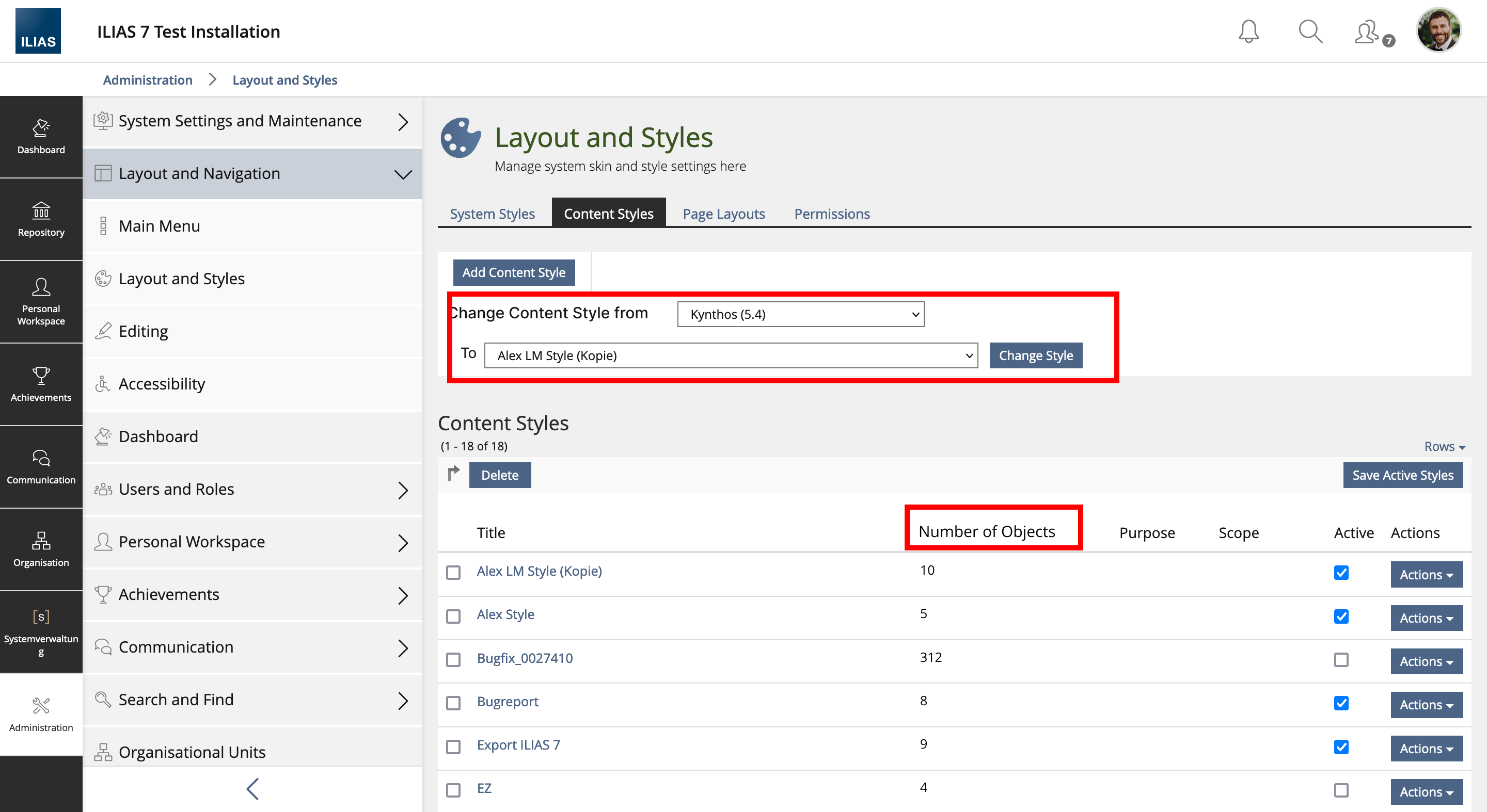 This option is used to change the content style of ALL objects that use the current Standard Content Style and not a Individuell Stylesheet. This way, the default style sheet can be fixed for old objects and a new global default style can be introduced.