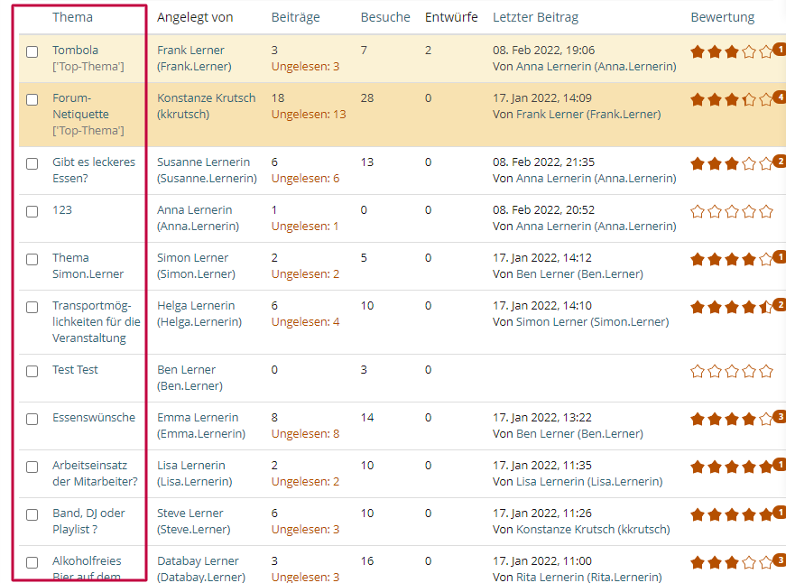 A forum that contains many threads quickly becomes confusing due to the list view.