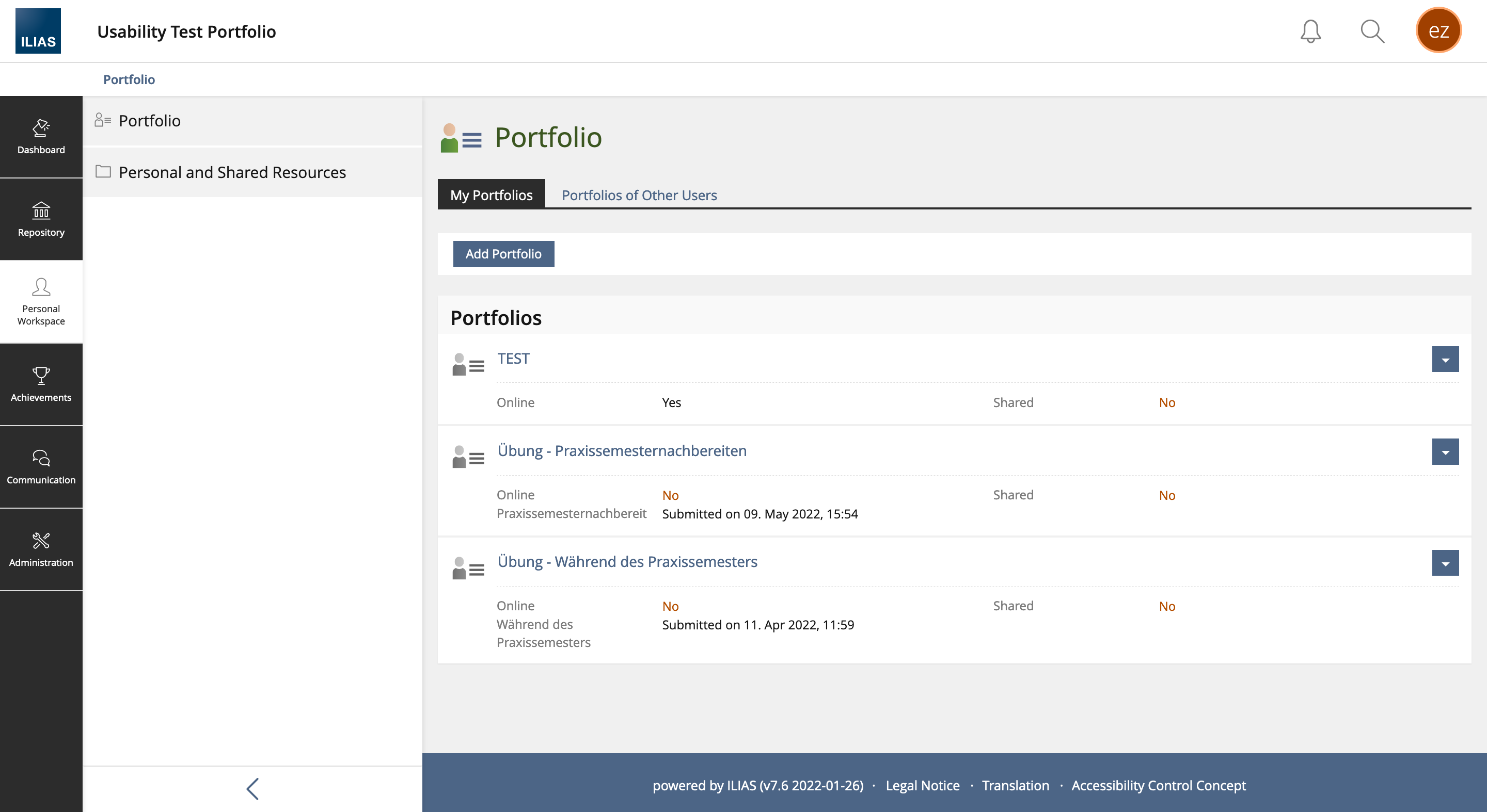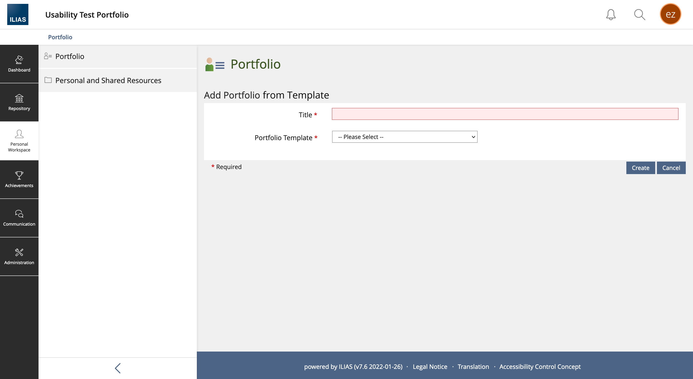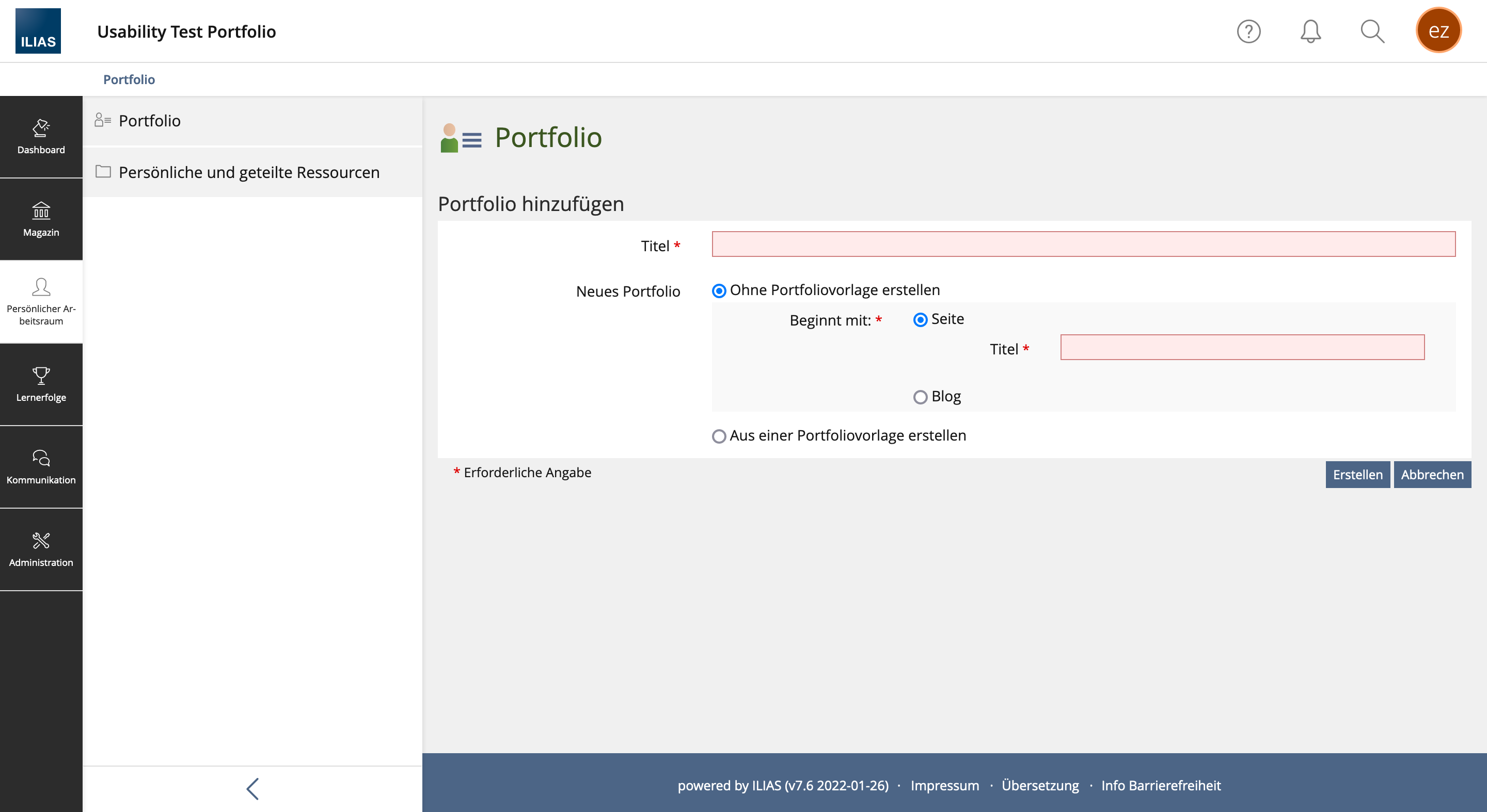 In a usability test conducted by the Portfolio and Competence Management SIG, we found that users are overwhelmed by the many options available when creating a portfolio.