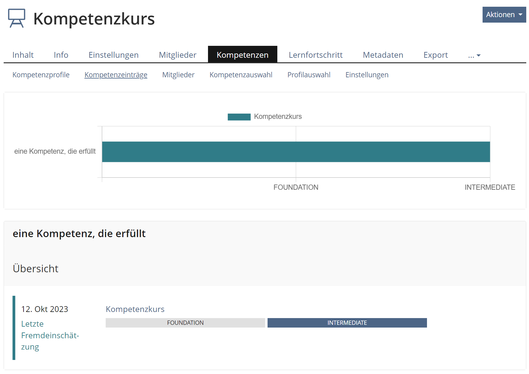 Competency profiles are also displayed in courses and groups. Legacy UI is still used here. In order to streamline the presentation of competence profiles, the competence profiles in courses and groups will now also be transferred to KS components according to the Achievements » Competences-view.