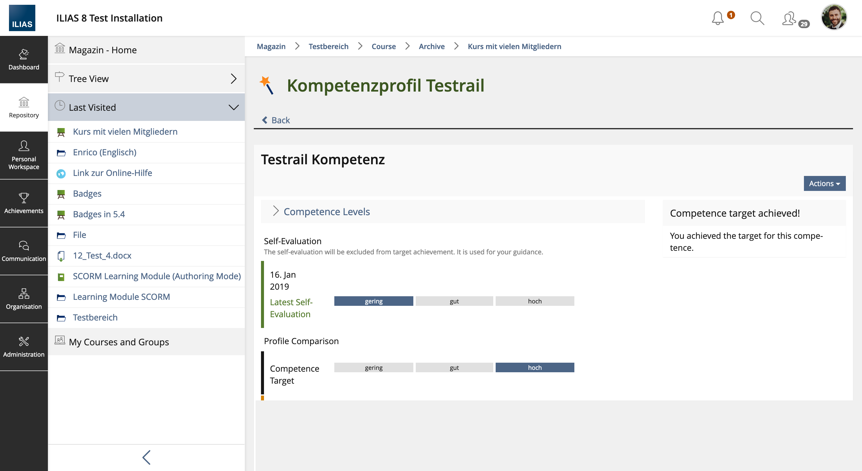 With ILIAS 8 the competence profiles in the overview under Achievement » Competences have been revised.