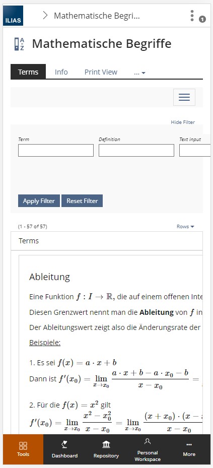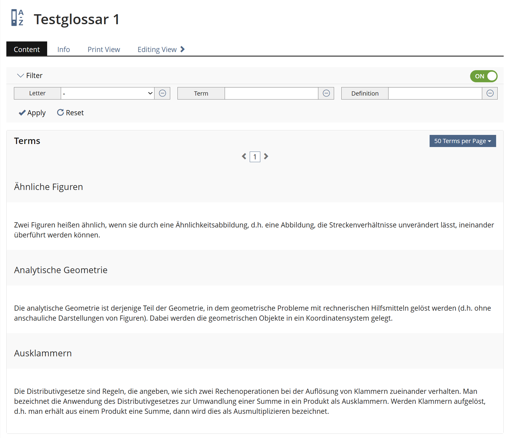 - A KS filter for the first letter selection and term/definition text filtering