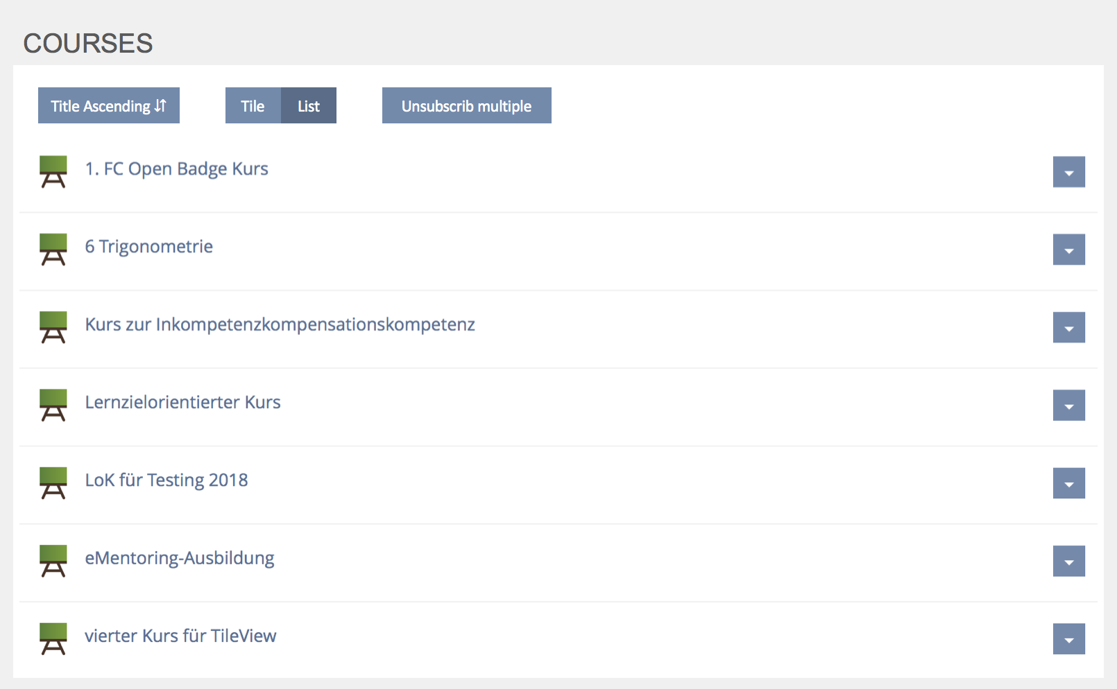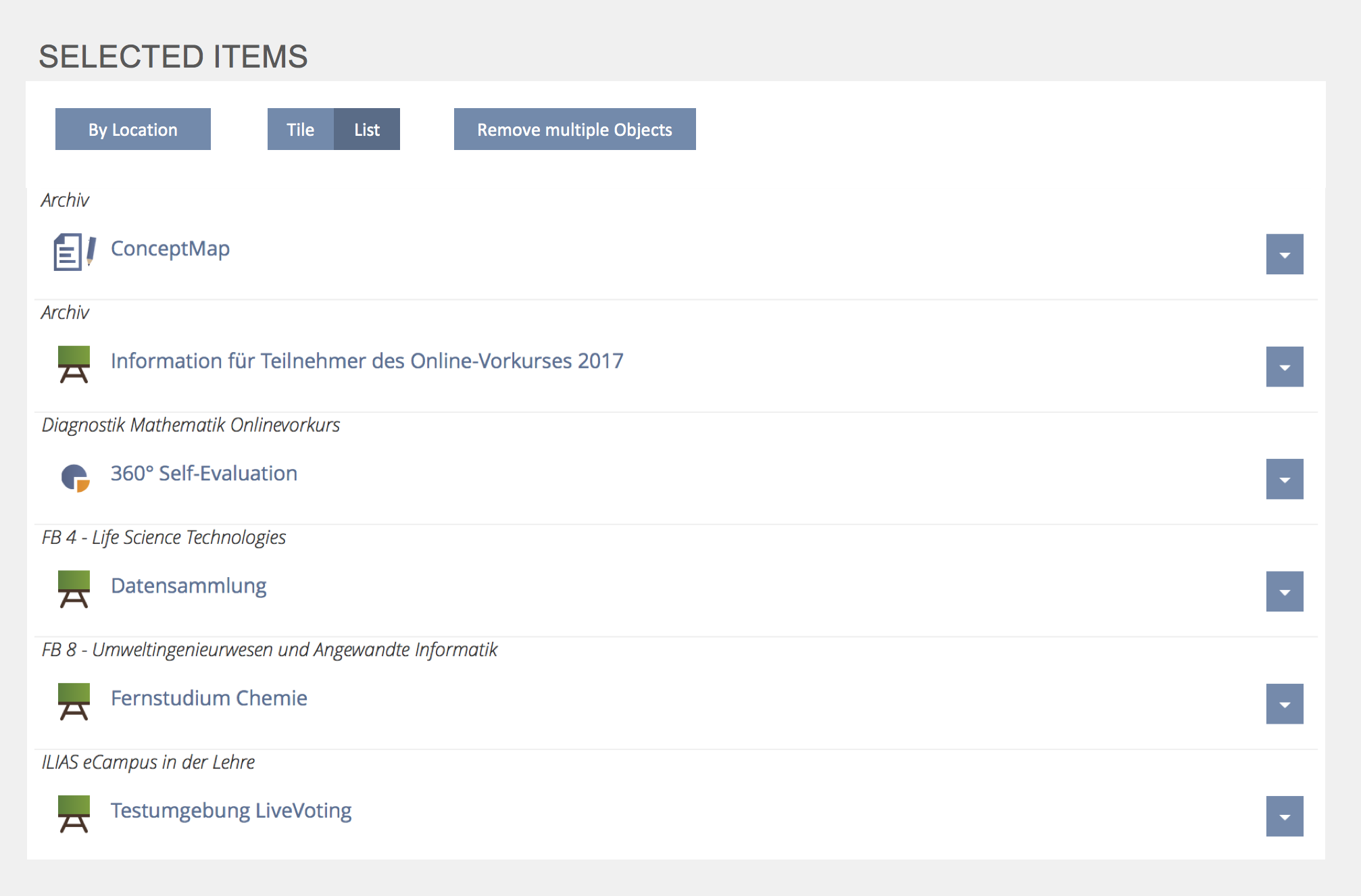 - My Courses and Groups (own screen in Mainbar » Repository » My Courses and Groups)