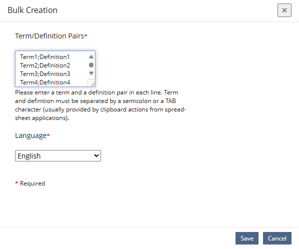Bulk Creation of Term/Definition Pairs