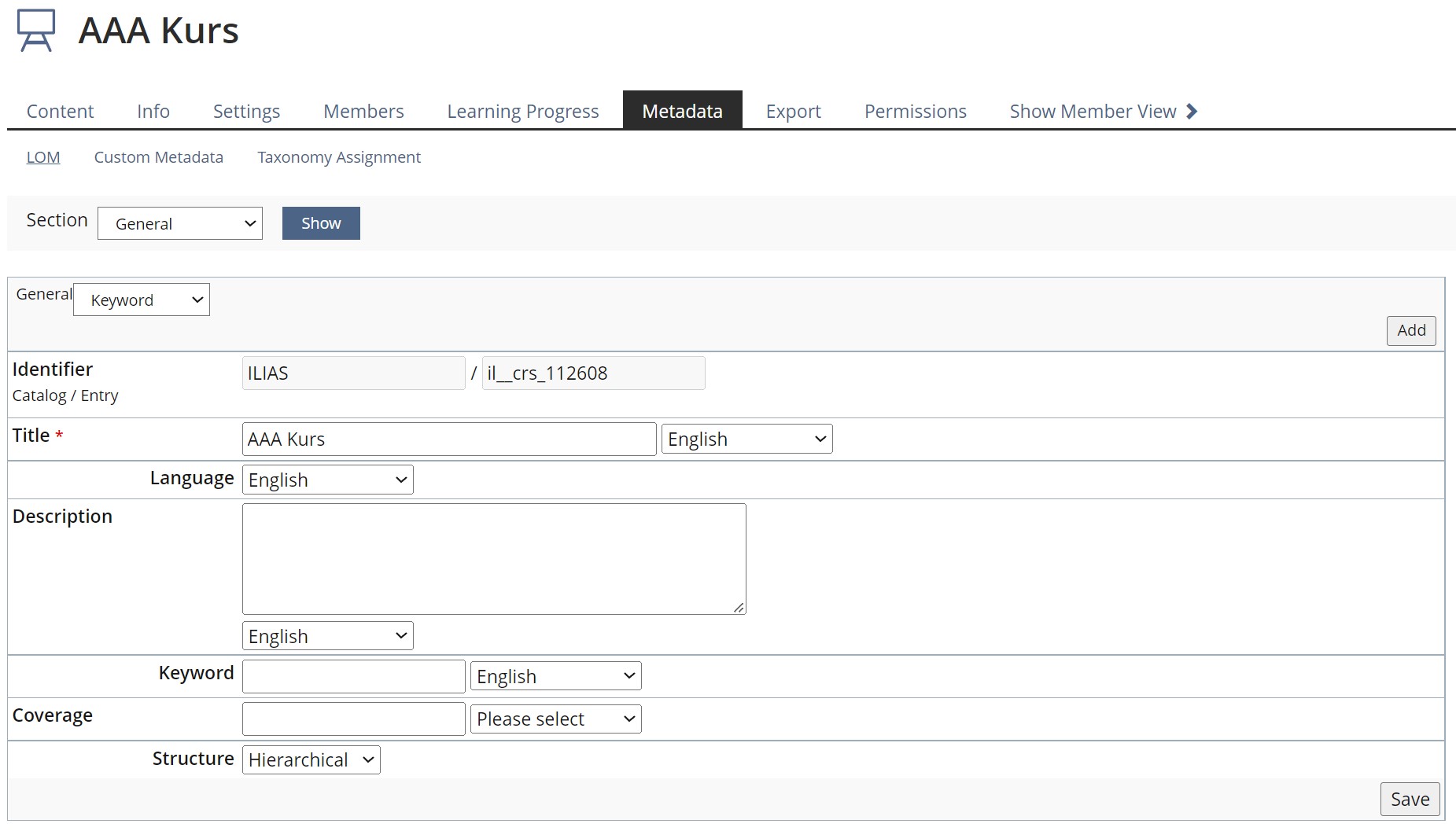 ILIAS provides a LOM Editor per object. Users can actually type in metadata. ILIAS does not automatically fill-in metadata in most cases, actually very few objects do.