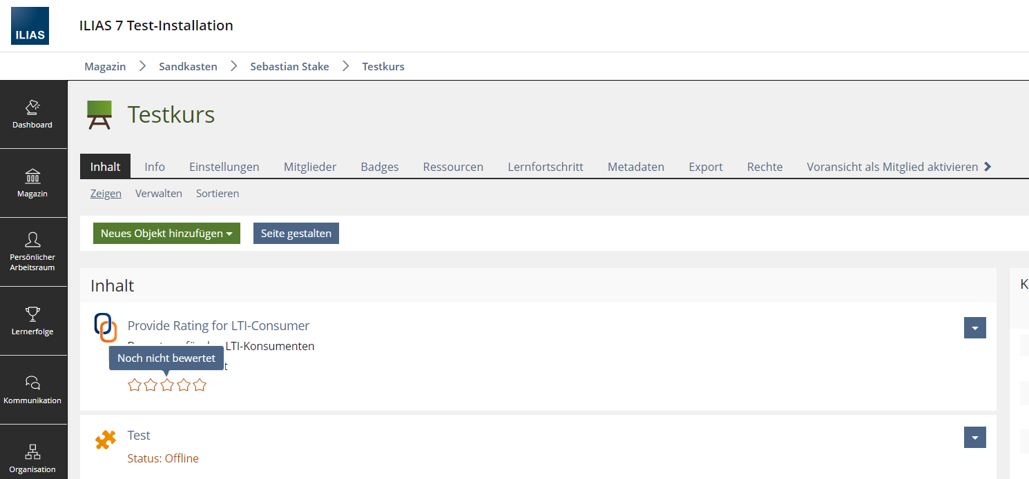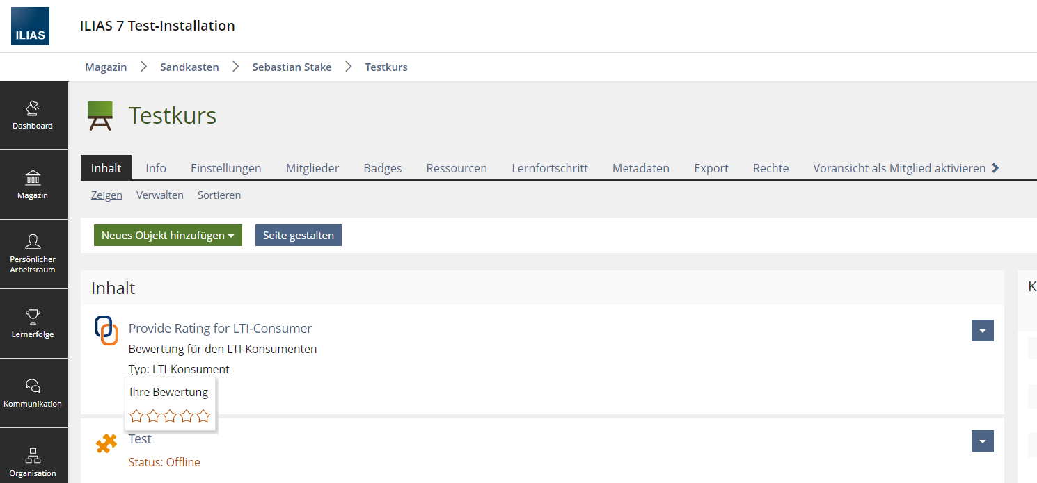 Furthermore exsiting Rating could be displayed as part of the Metadata Set (discussed in Provide Rating for LTI-Provider)