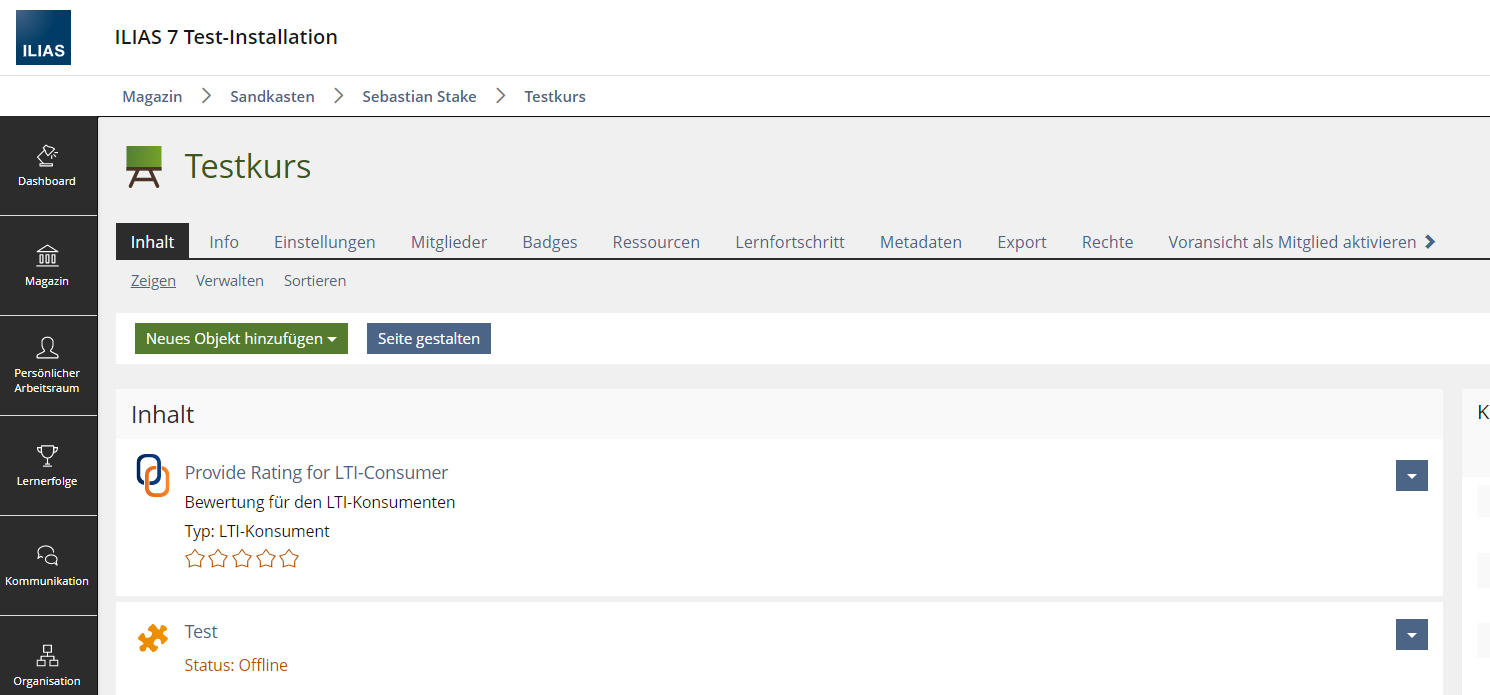 Contrary to other ILIAS-Objects the LTI-Consumer doeasn't support Rating. This could be very useful to give Feedback to the provided content.