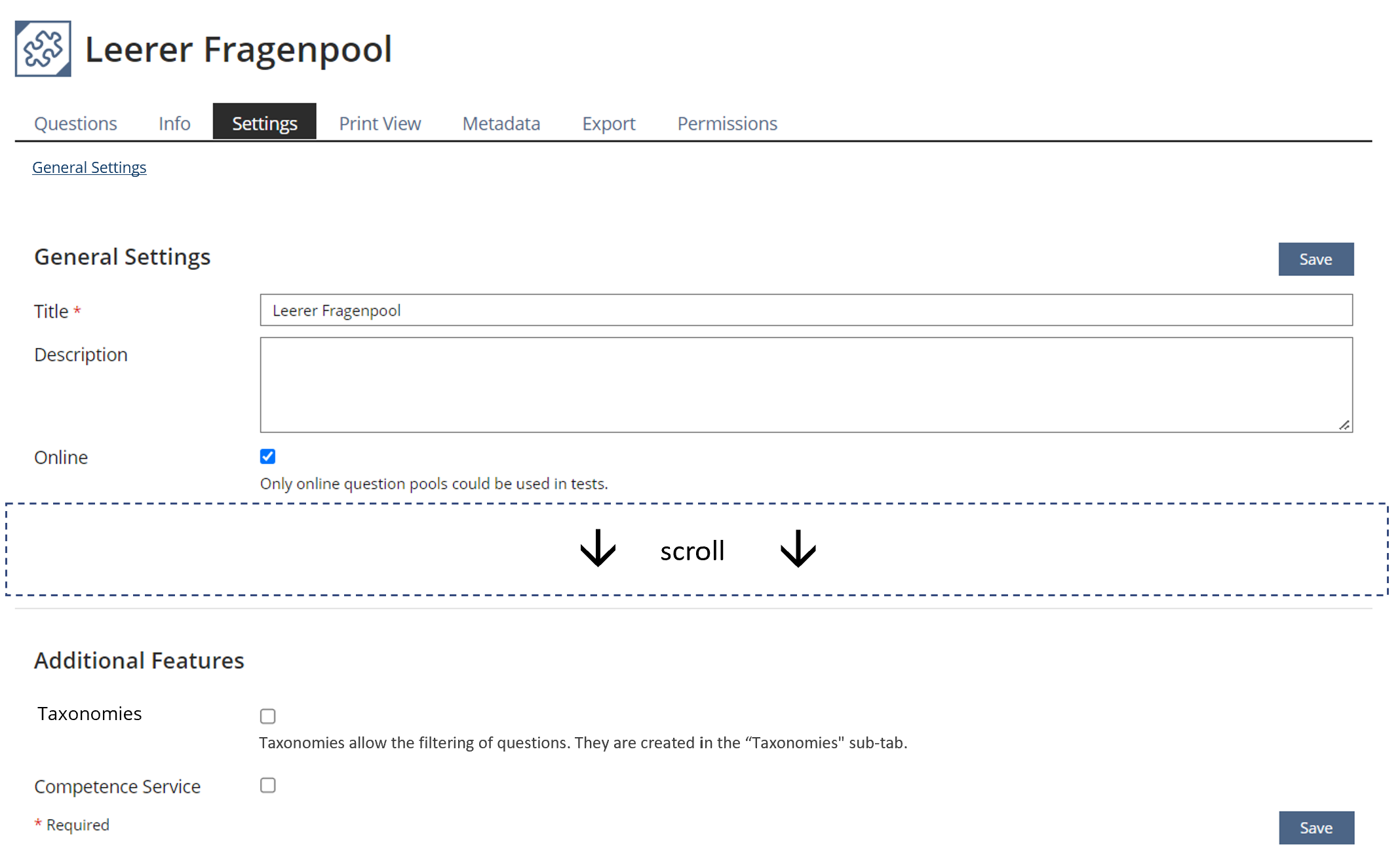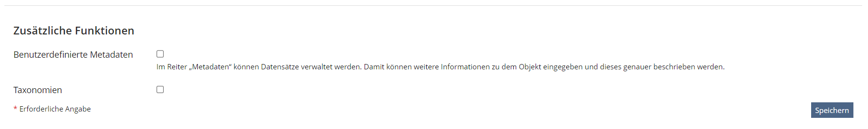 Taxonomies in question pools and glossaries are to be activated in the tab Settings. The options for presenting taxonomies in all three object types will move to the referring sub-tabs Taxonomy / Taxonomies. This streamlines the behavior of Taxonomies in categories, glossaries and question pools.