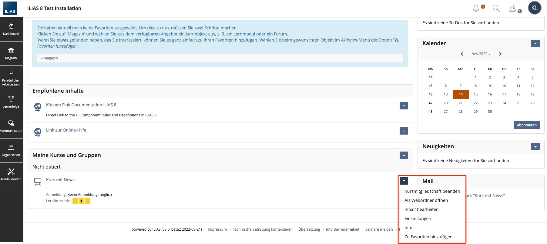 Scharmer, Lukas [lscharmer] 20 FEB 2023: After a discussion with Szmais, Ingmar [iszmais] we agree that this proposal uses the Dashboard as a configuration view for courses, which is not the purpose of the Dashboard and which is why we do not recommend this feature.