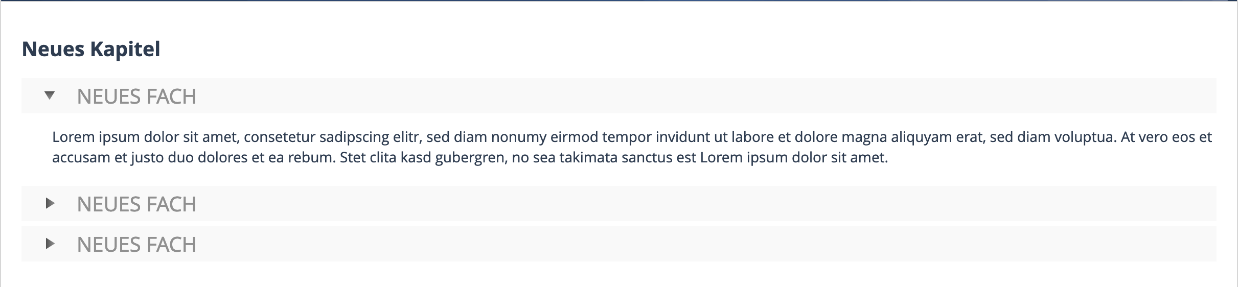The accordions in the content style is adjusted to the appearance of the accordions in the system (e.g. Add New Item). Even if they are legacy accordions, this unifies the look of the installation.
