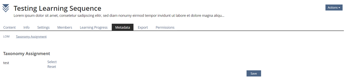 - learning sequence - new tab "Metadata" - subtab Taxonomy Assignment