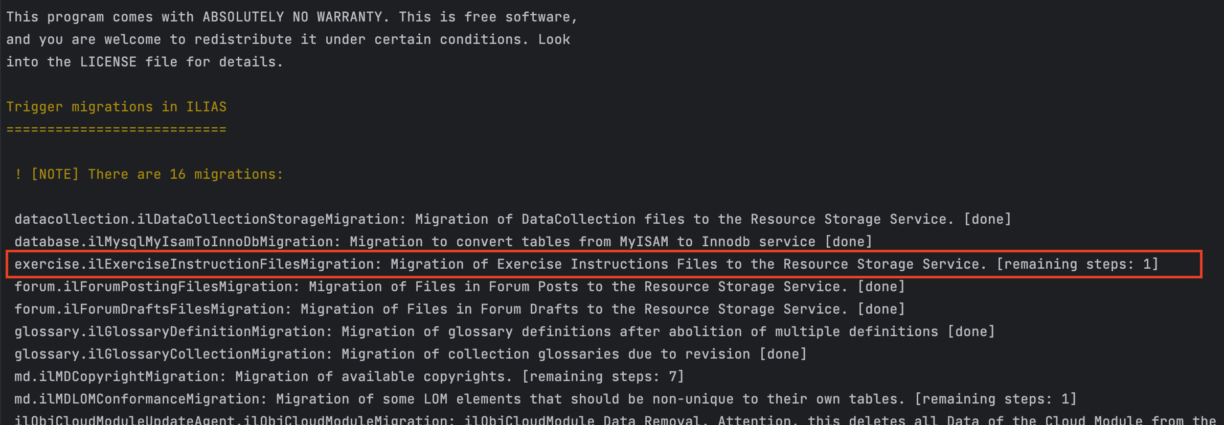 A new migration has been introduced with ILIAS 9: exercise.ilExerciseInstructionFilesMigration