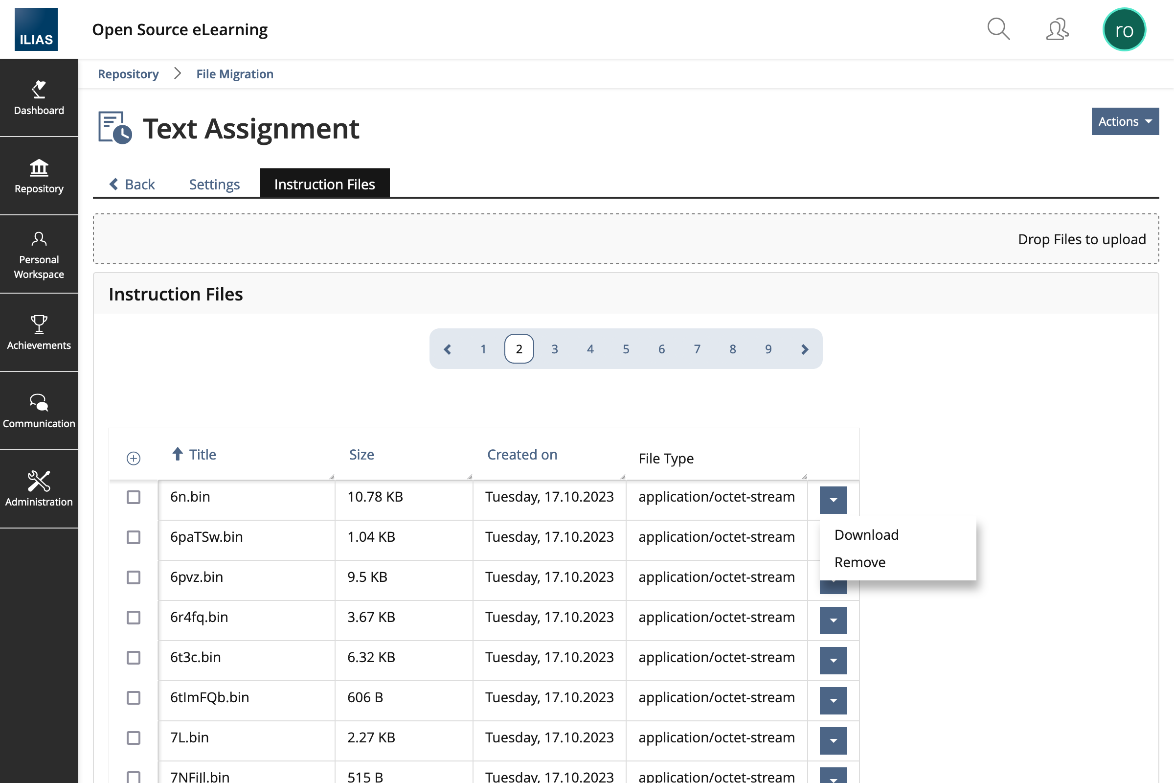 The exercise object has different use cases for working with files. These are migrated separately into the IRSS.