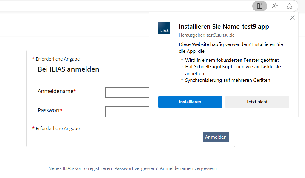 In order to enable the most user-friendly provision possible, the browser should recognize the option of installation ILIAS as a PWA.