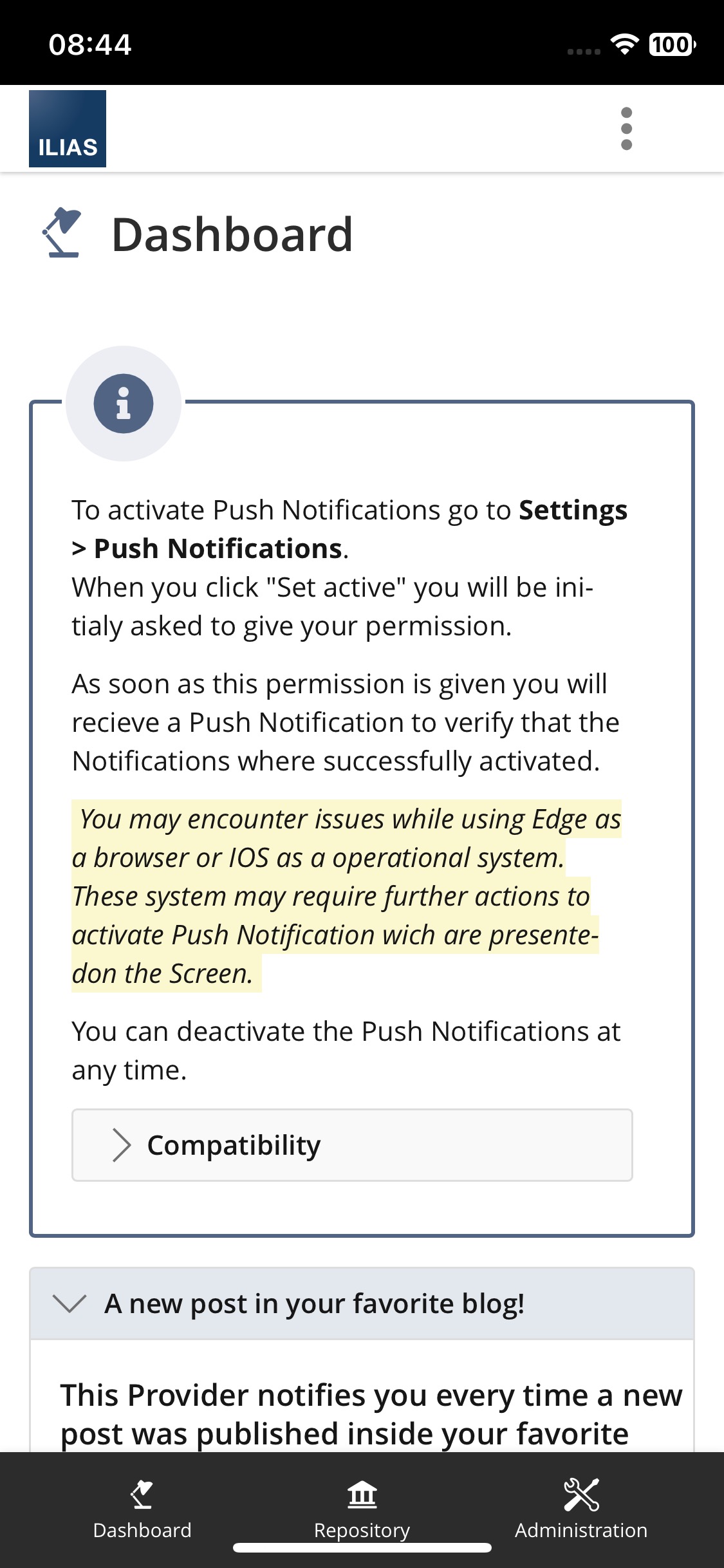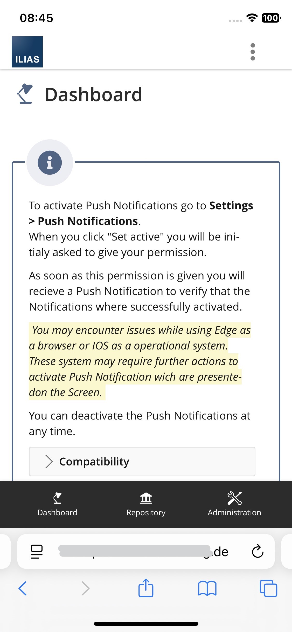 Enabling PWA behaviour for ILIAS is an elegant solution with barely any additional code footprint.