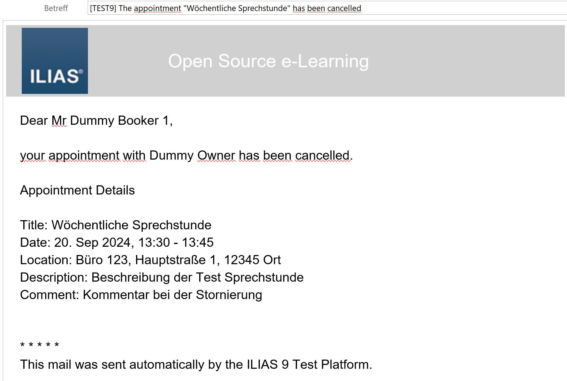 Falkenstein, Rob [rob] 16 NOV 2023: This is closely related to: https://docu.ilias.de/goto_docu_wiki_wpage_7997_1357.html . It would be good to make a decision if mails should generally be sendable via the consultation hour or if only the individual mail for cancellation should be sent. I personally prefer this feature here and maybe add the other feature in another step.