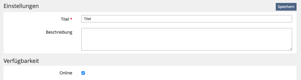 The first entry in the form section is "Status" and offers a checkbox "Online", which is deactivated by default after object creation.