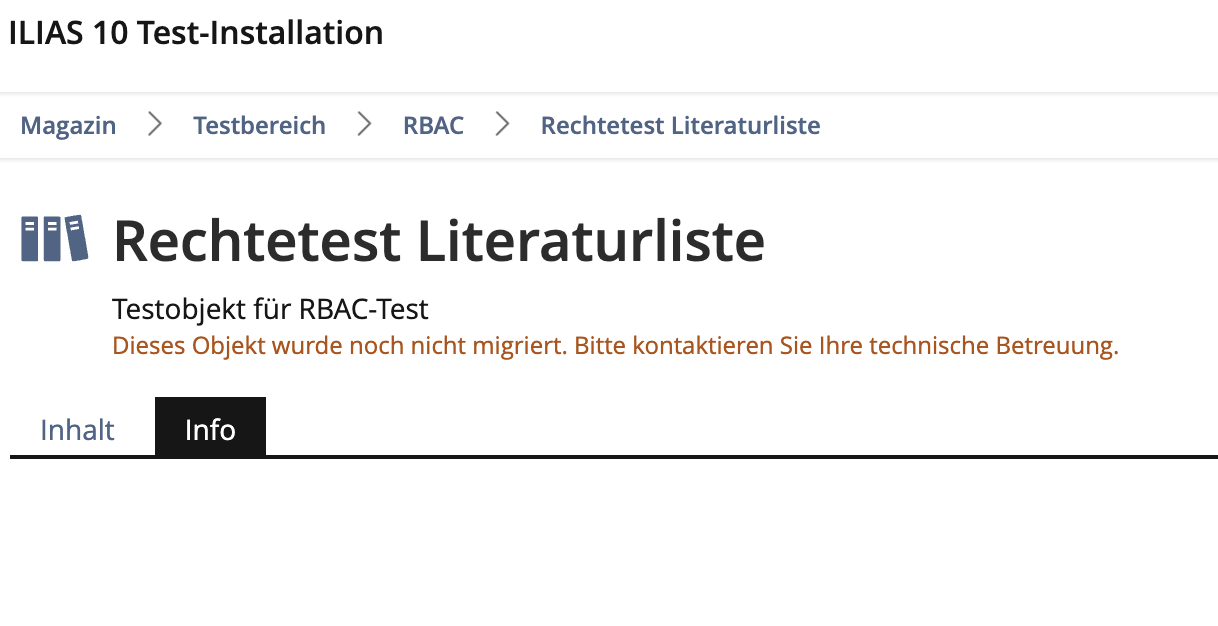 An info page without info is IMHO a no-go and looks like a bug to me. We should not publish ILIAS 10 in this state.