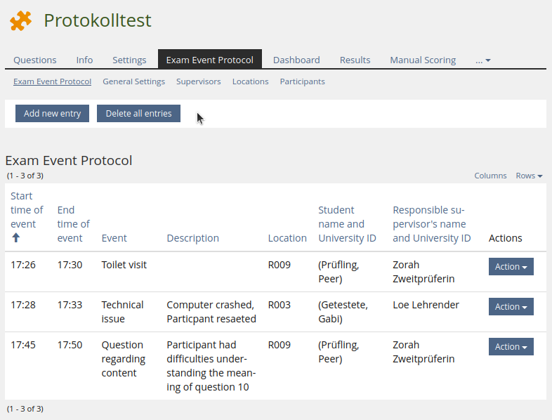 For digital examinations, it has so far been necessary to also write an examination protocol on paper. This leads to the dilemma that the examination itself is digital and the examination protocol must therefore be stored separately from it. Since many universities and colleges are now introducing digital student files to which examinations and tests can also be attached, it is a logical step to also keep digital examination protocols for digital examinations.