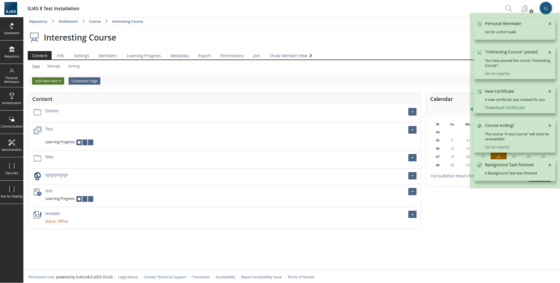 In ILIAS 8 toasts were introduced. Unfortunately, those are still rarely used, which keeps their advantage to the general UI experience low.