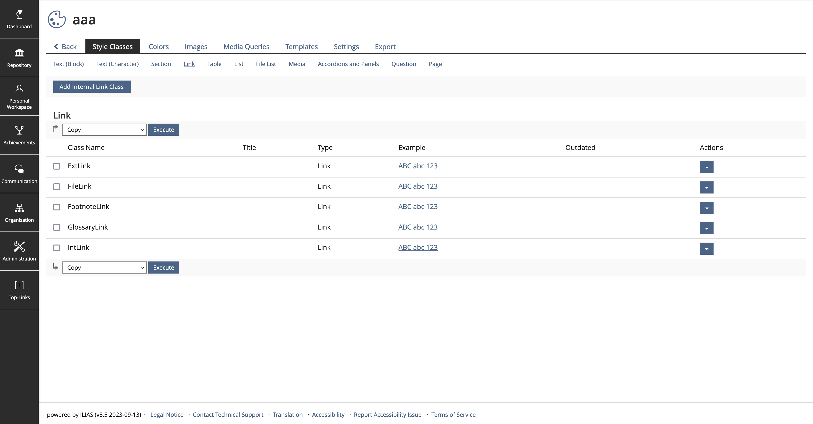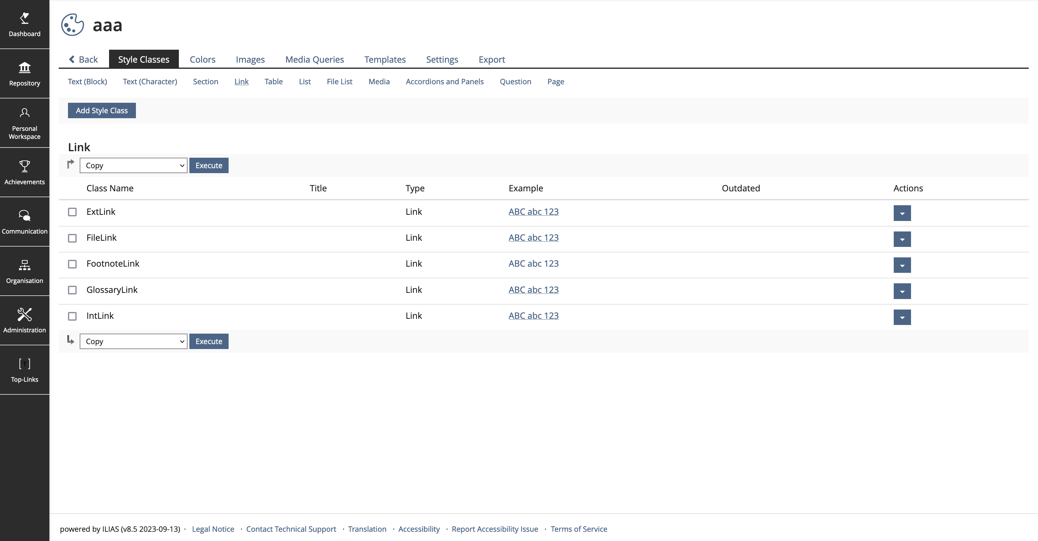 - Edit a Content Style » 'Style Clases'-Tab » 'Link'-Subtab