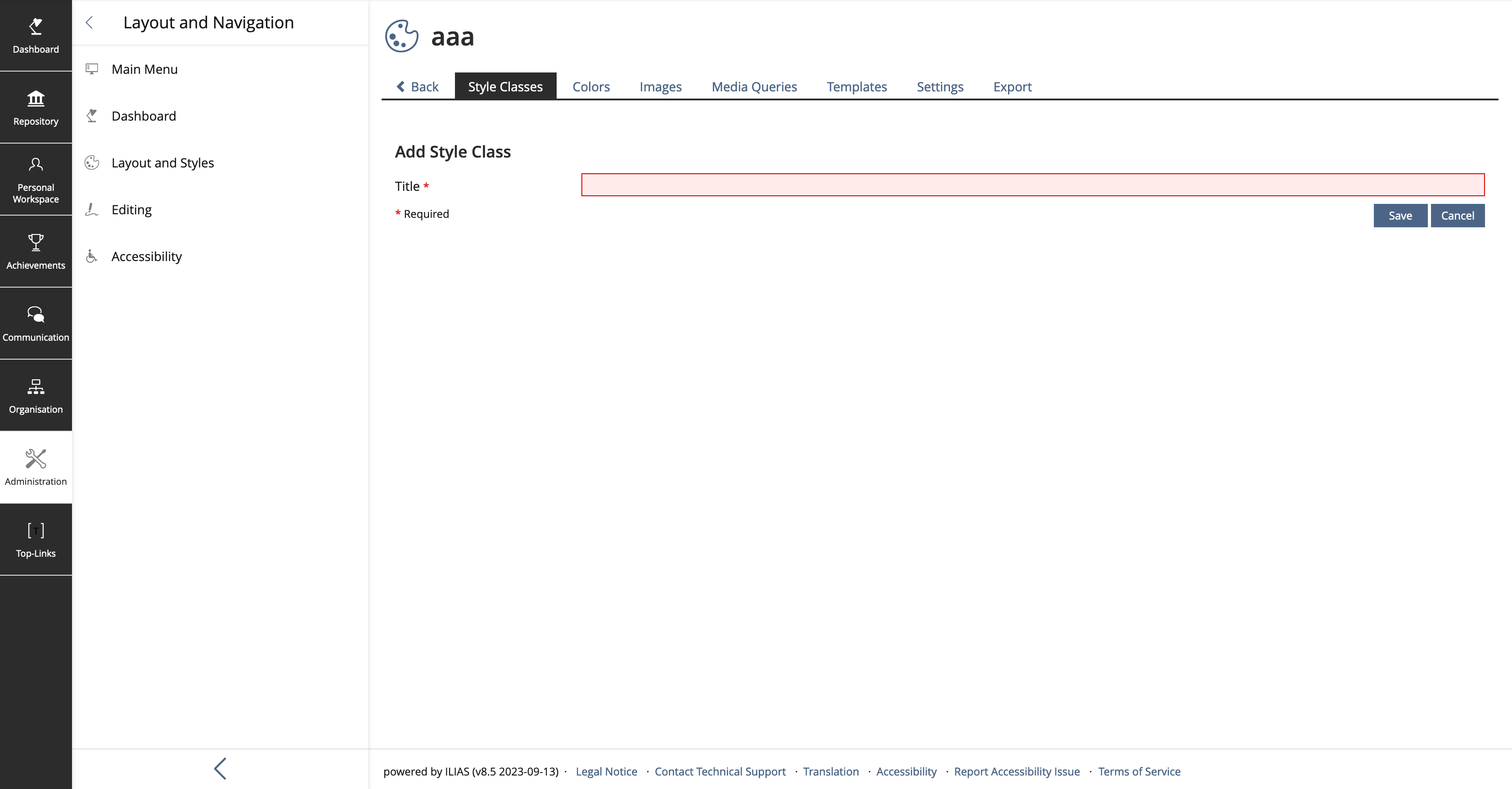 If you edit a content style, a toolbar is added to the 'Style Clases' tab in the 'Link' sub-tab. The button 'Add Style Class' can be used to add new link styles.