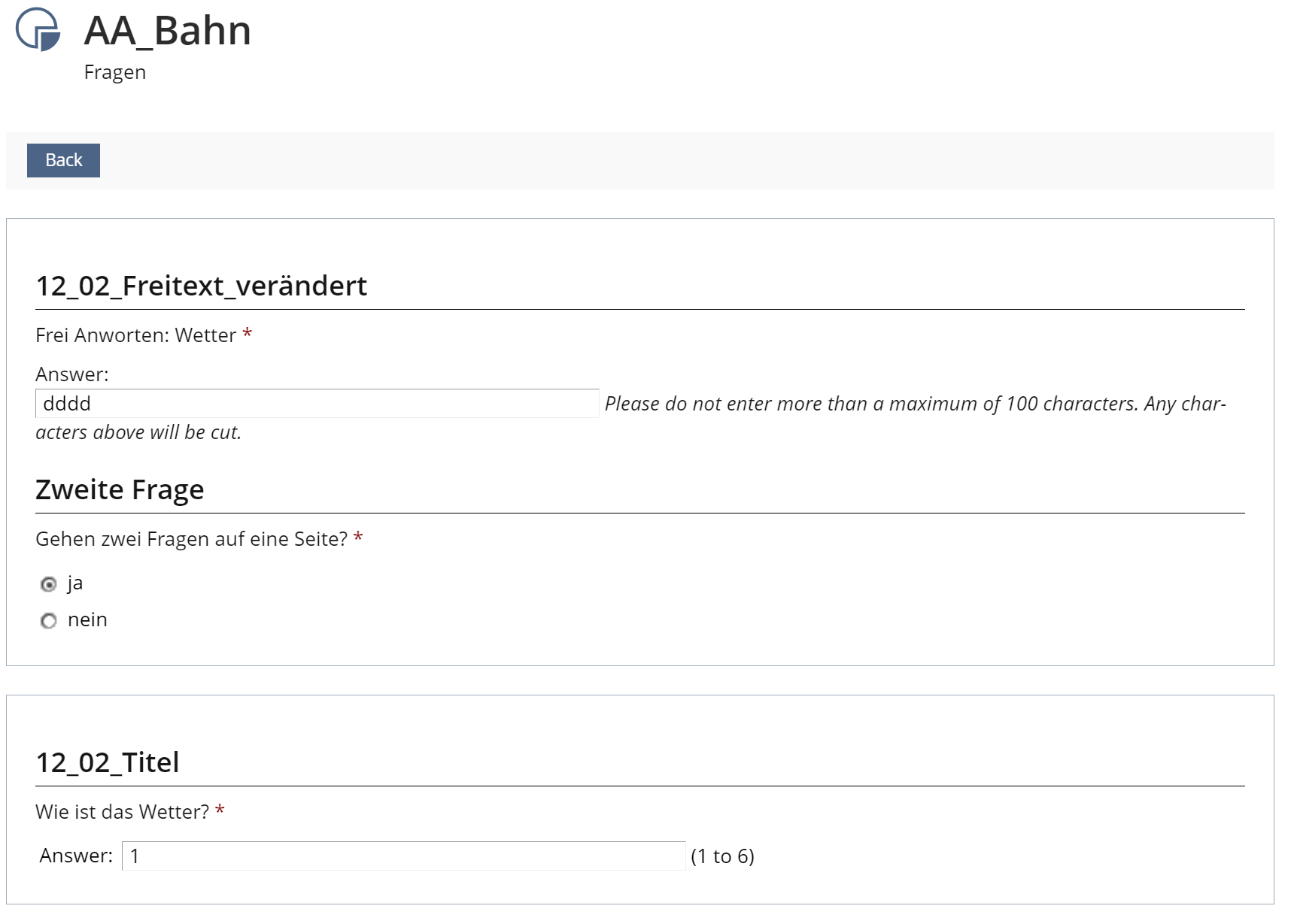 The "View given answers" page in surveys can be offered to participants who finished the survey.