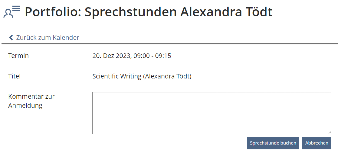 Send Comment for Booking of Consultation Hour in Mail