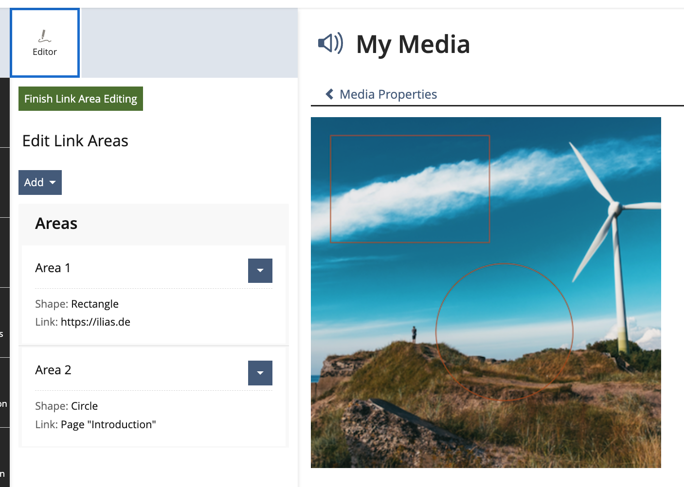 ILIAS 9 introduces a more convenient way to edit interactive images. However link areas in media objects are still using the old approach.