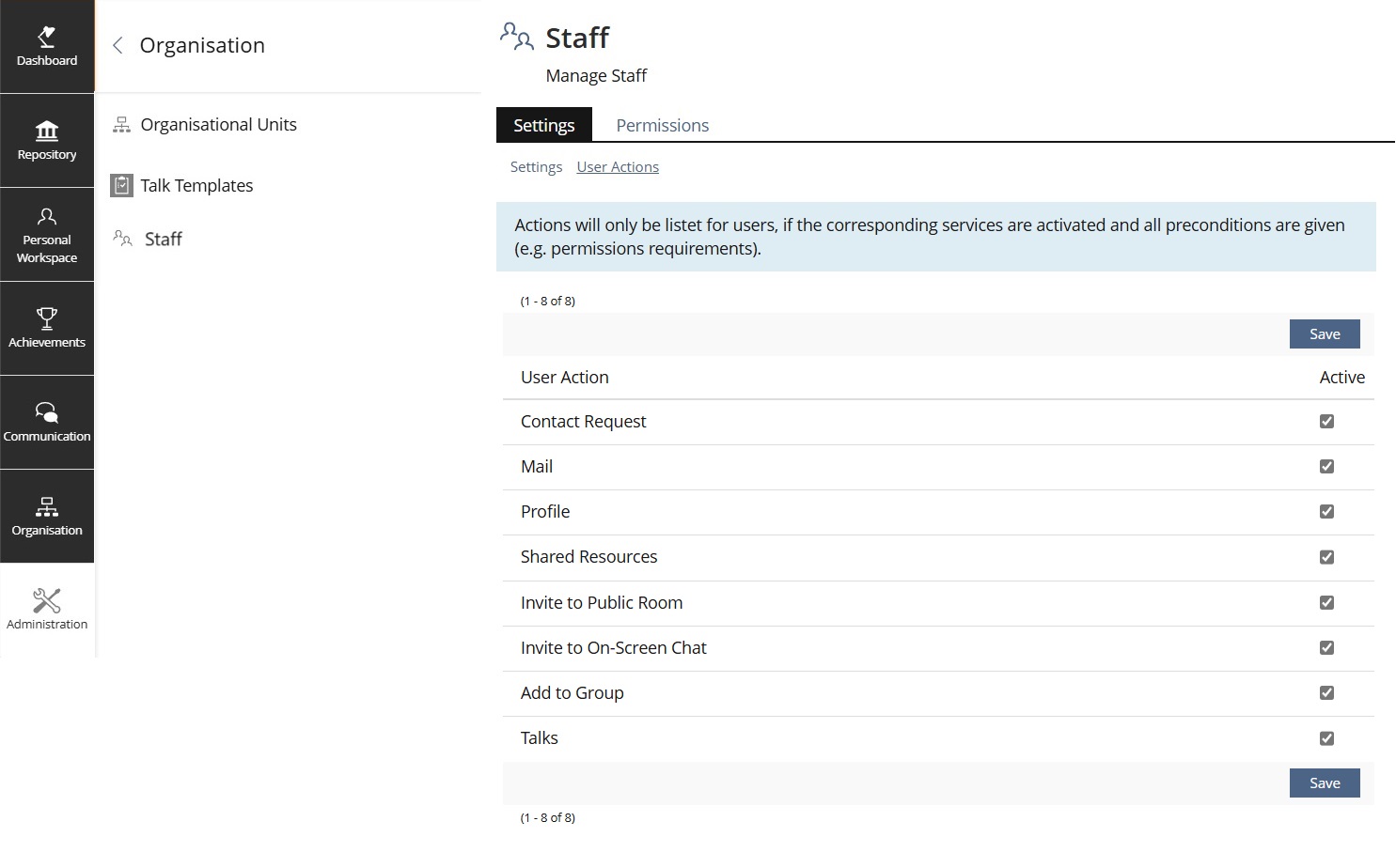 Administration and User Action Context for Staff