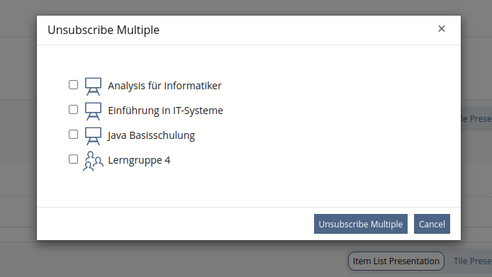 While its purpose was unquestioned withing the "Page-byPage" approach in older ILIAS version, the context of an modal requires more interactivity and attention by the user whos interacting with it and therefore strengthens the process awareness. Due to that the final confirmation might be considered laborious within the cognitivly improved process.