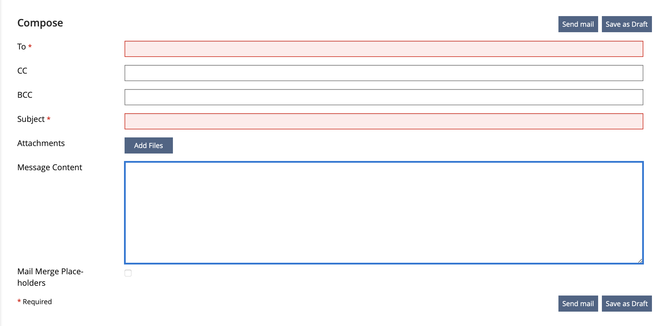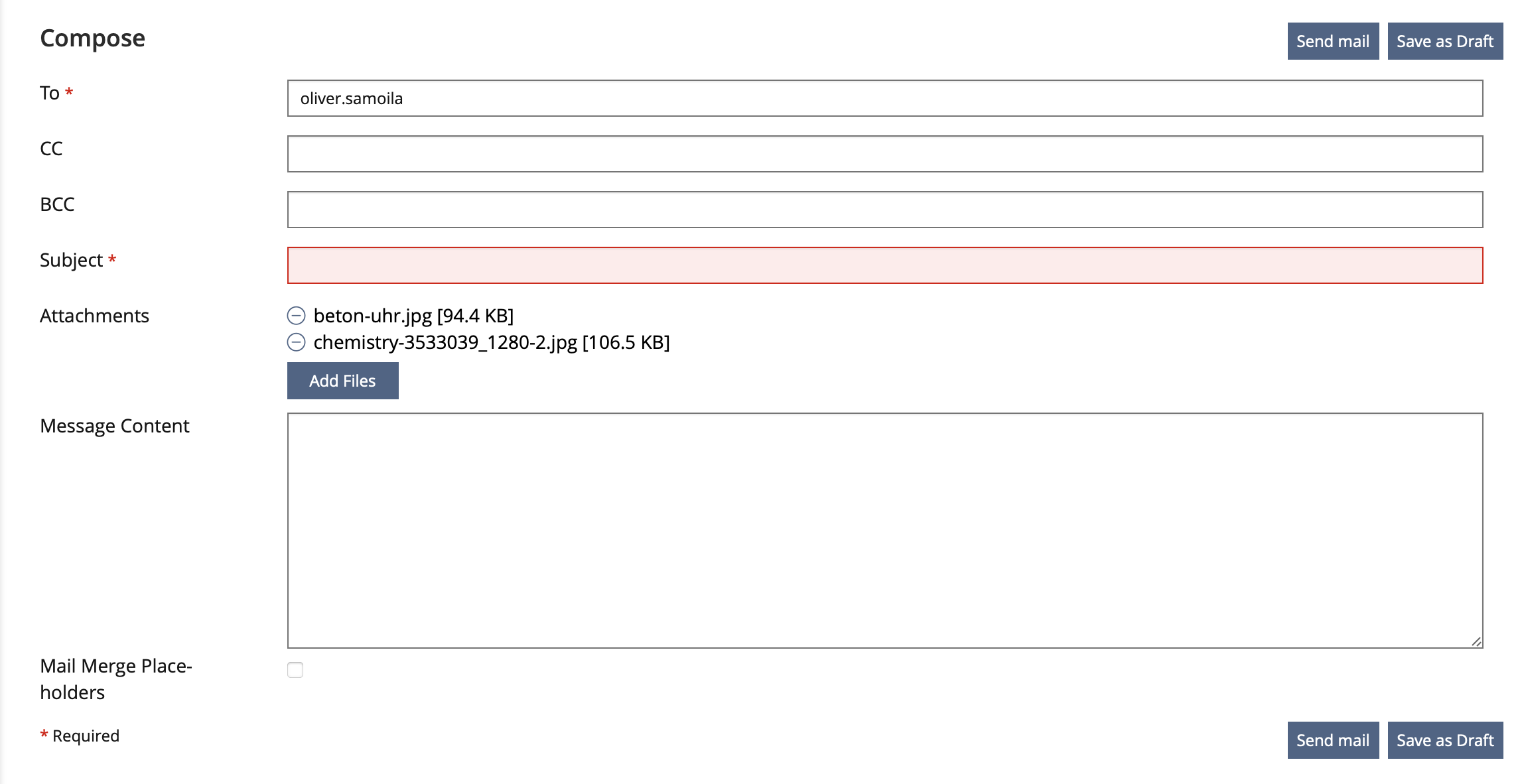 The form in which the mail is created only includes an "Add Files" button for attachments.