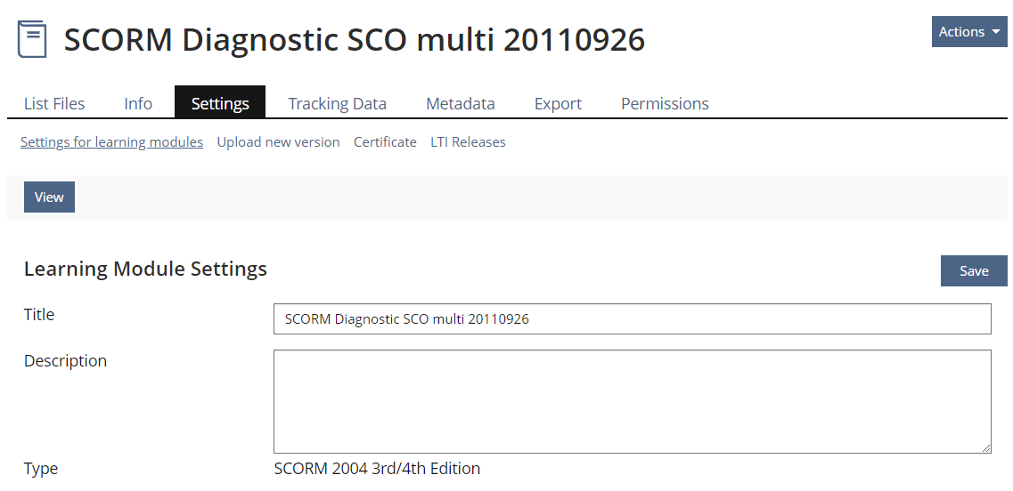 Abandon «View» in SCORM Settings