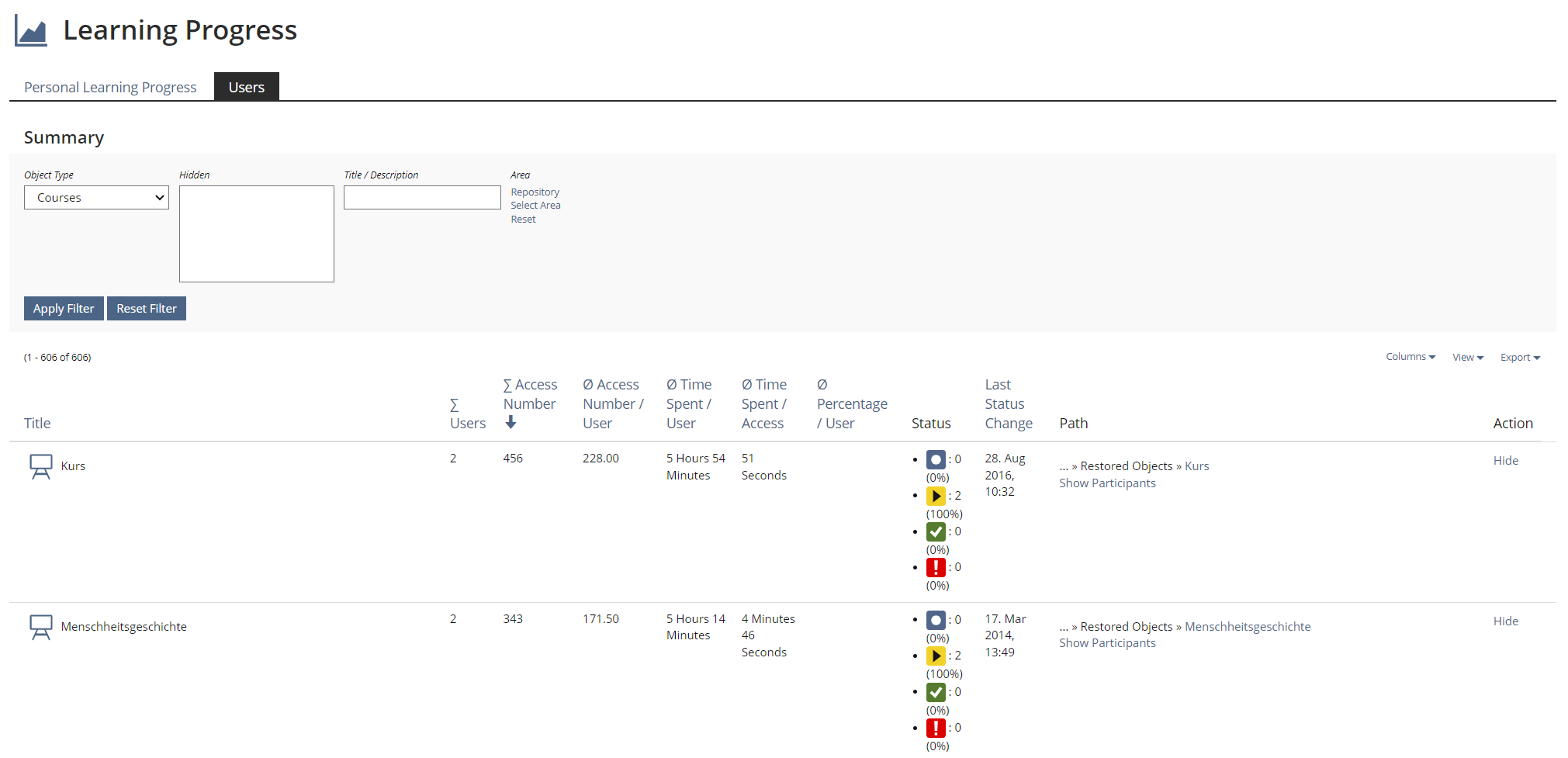 Abandon «Users»-Tab in Achievents-Learning Progress