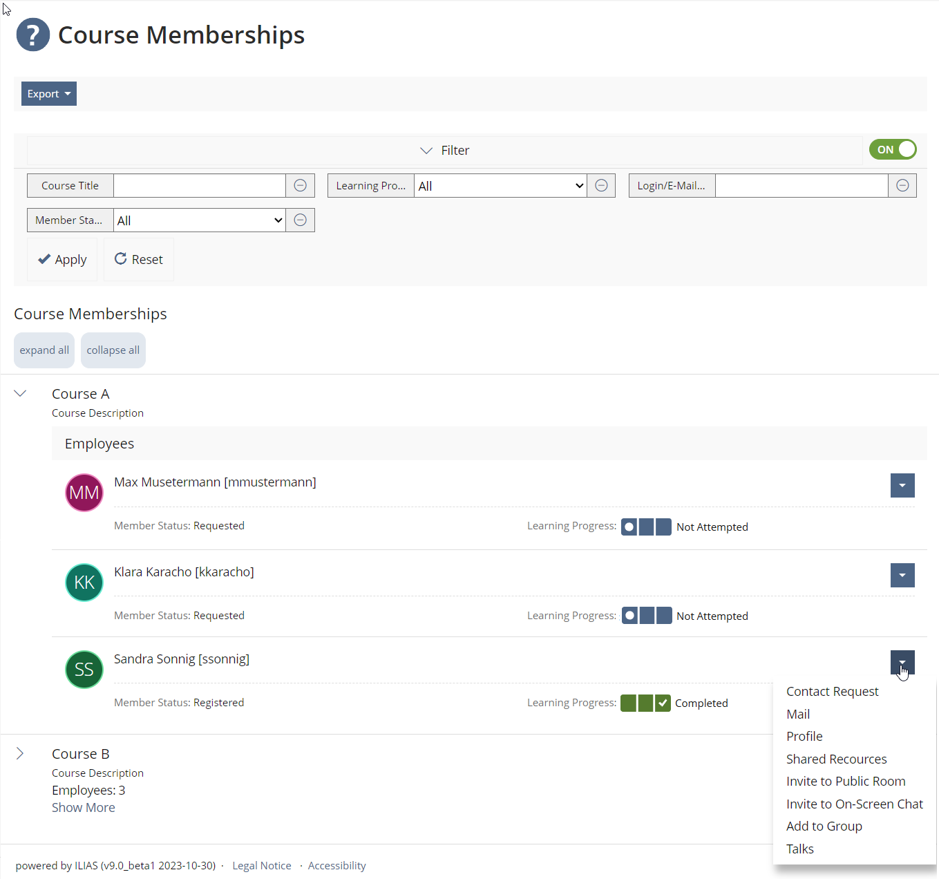 - Organisation > Course Memberships