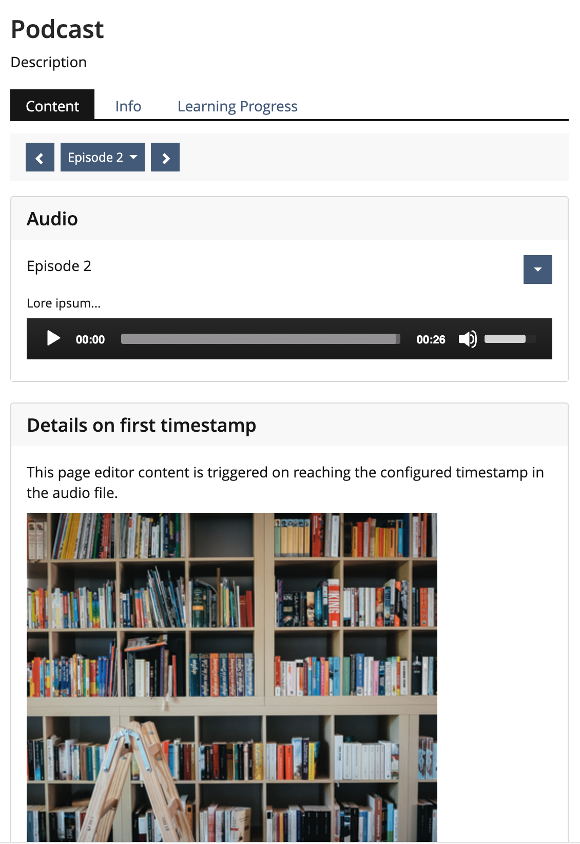 It will be possible to add a list of content pages using the page editor. These items are called supportive content. This content will be displayed next to the media player. A two column view will present the media player on the left and the supportive content on the right. Secondary listing panels will not be displayed in this view.