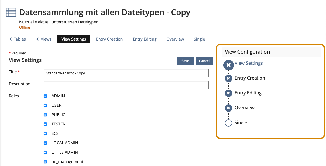 Finally: Status "Configuration Complete" in "Views" overview does not match the status of the "Workflow" at all.