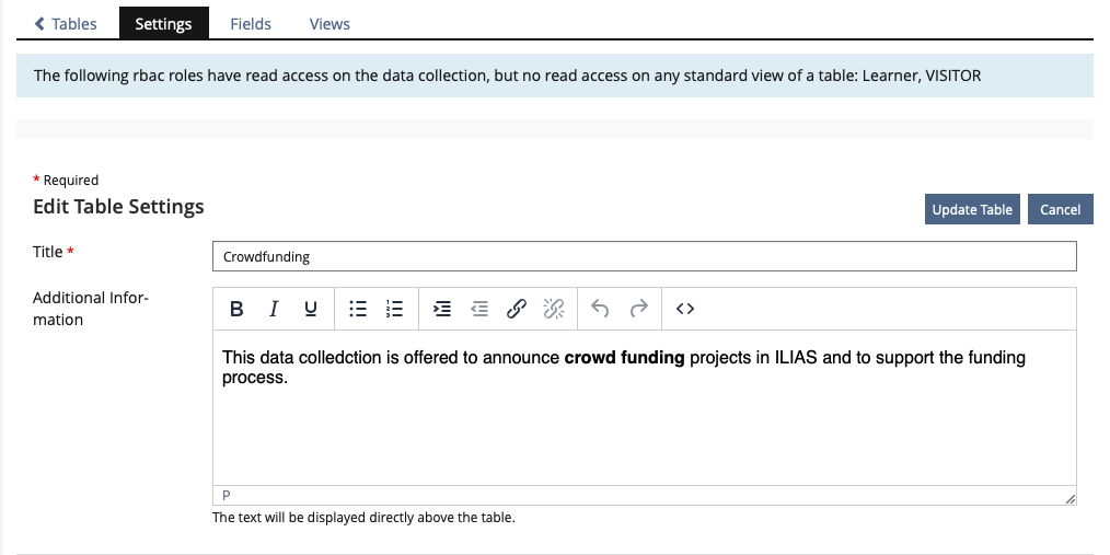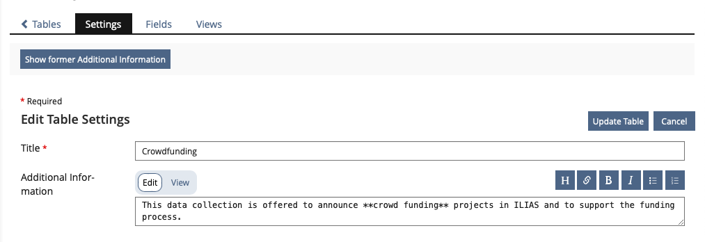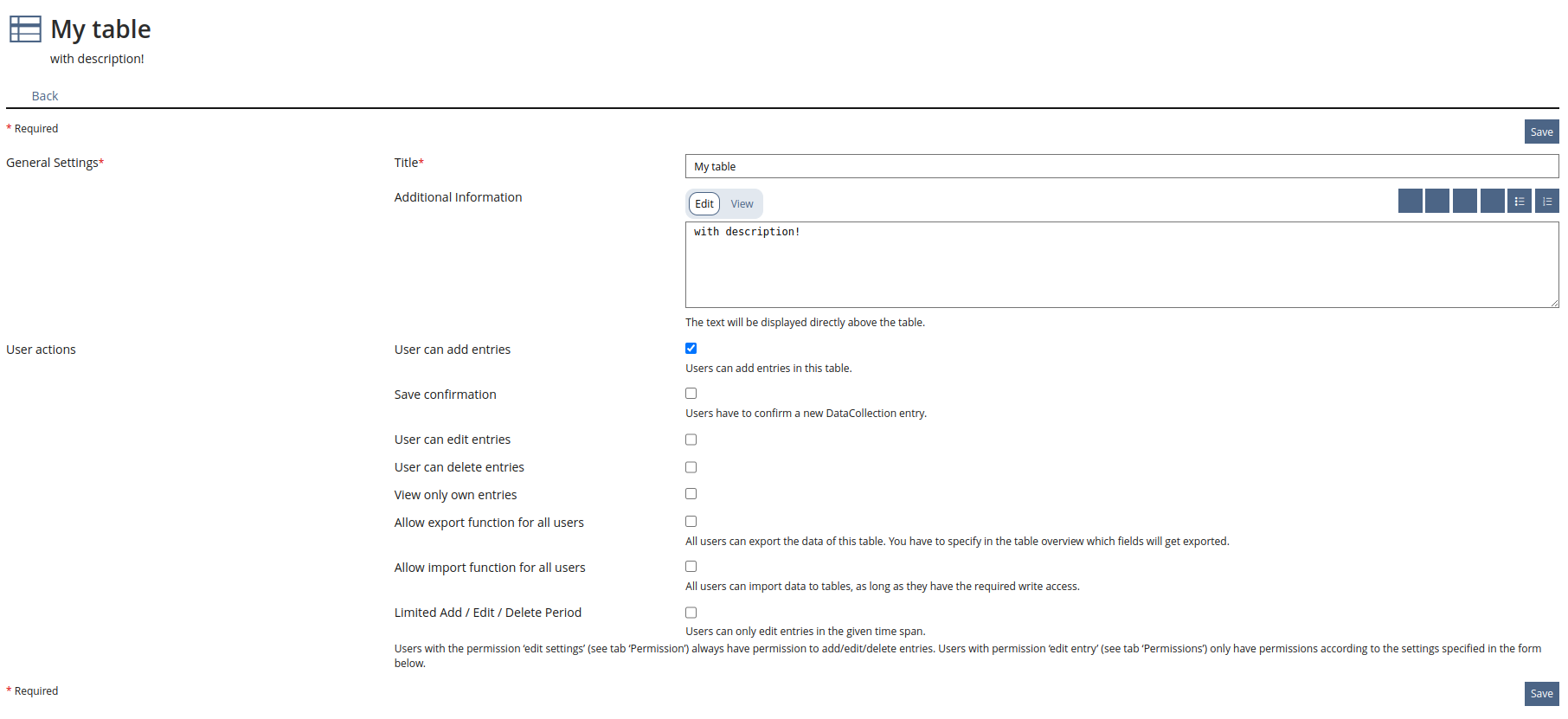 - The form button was unified to "save" instead of "Create/Update table" and "cancle"