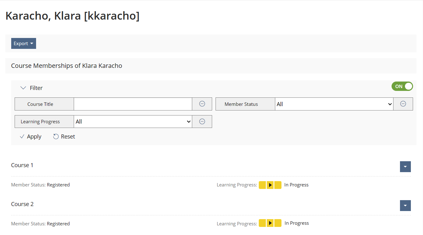 The current page for displaying the course memberships of a single User needs to be moved to kitchen sink.
