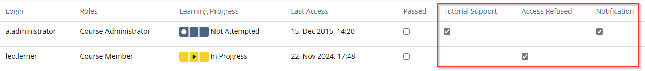 Currently, the SOAP Method assignCourseMember in the ILIAS core does not support setting the options Notification, Tutorial Support and Access Refused. While these options can already be set manually via the ILIAS UI, there is no way to enable them through SOAP.