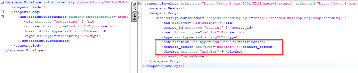 SOAP request before and after change: