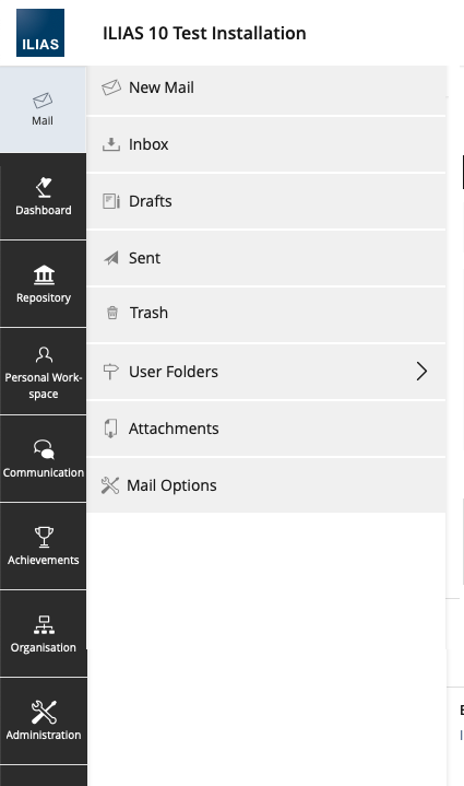 As part of user testing and further review of the implementation, we would like to decide against a variant in which all mail functions are integrated directly into “Communication” and then form a kind of substructure there.