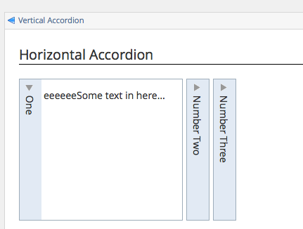 See screenshots for the new presentation. The CSS is already quite complex. For horizontal accordeons and adequate height must be specified, otherwise text will be cut.