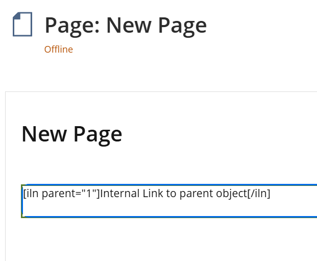 Analog to the other Internal Links, the Parent Object Link is shown, when editing the text element. The parameter is always "1".