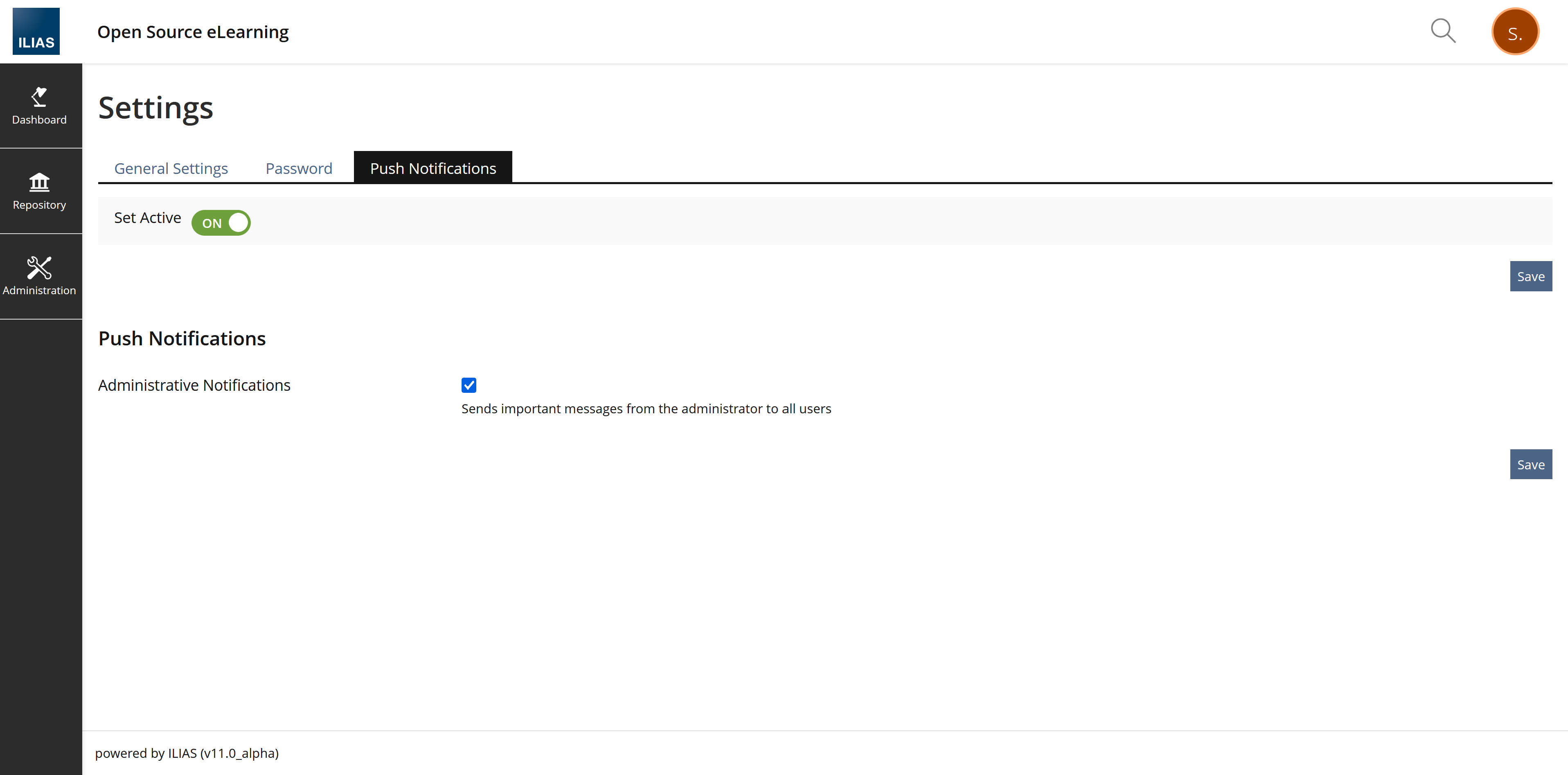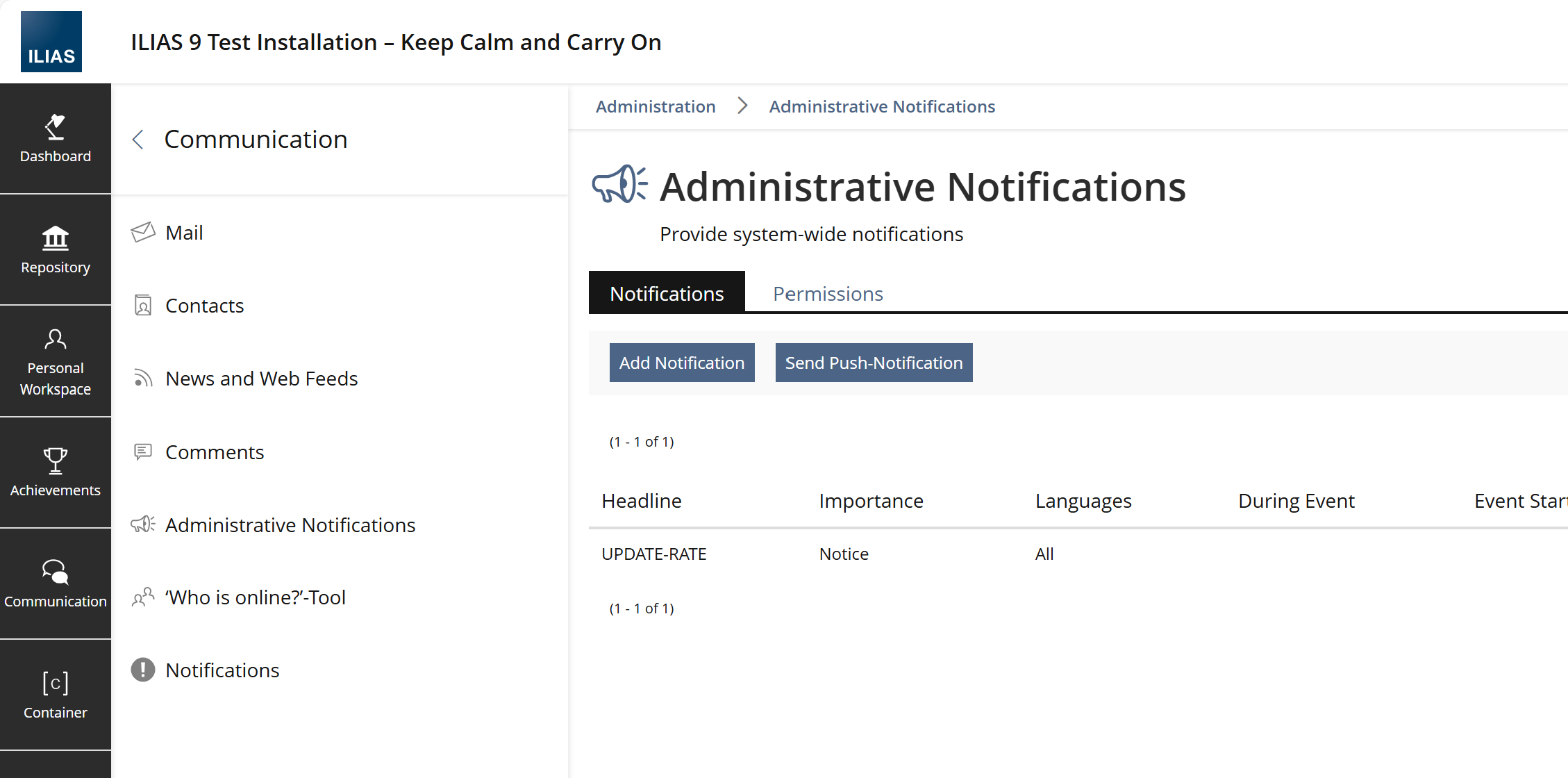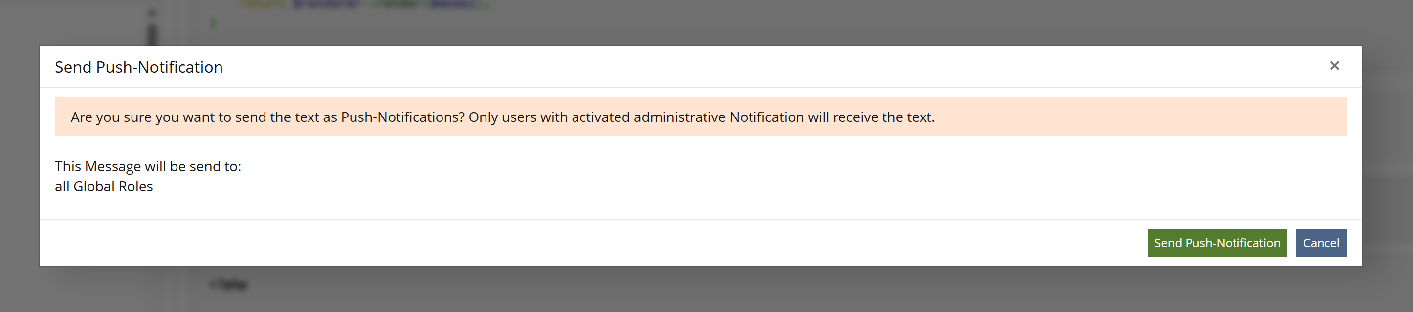 If an administrative Push-Notification is send, all Users (when have activated the Push-Notifications in personell settings and Browser/OS) will receive this message. This option is intended to complement the existing administrative notification options, not replace or duplicate them. Therefore, push notifications should not be sent automatically when the existing administrative notification options are used.