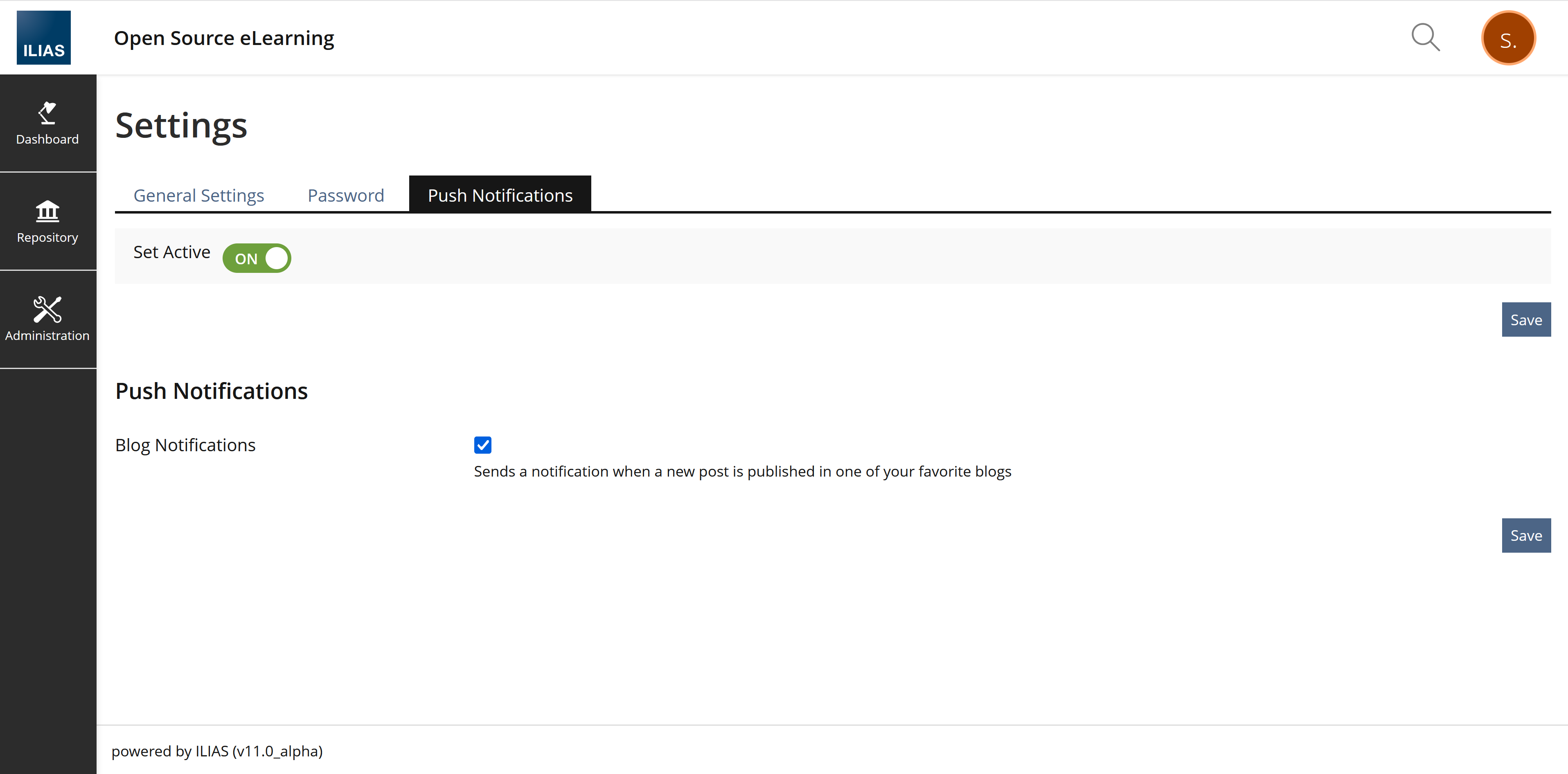 - Personal Settings / Push-Notifications
