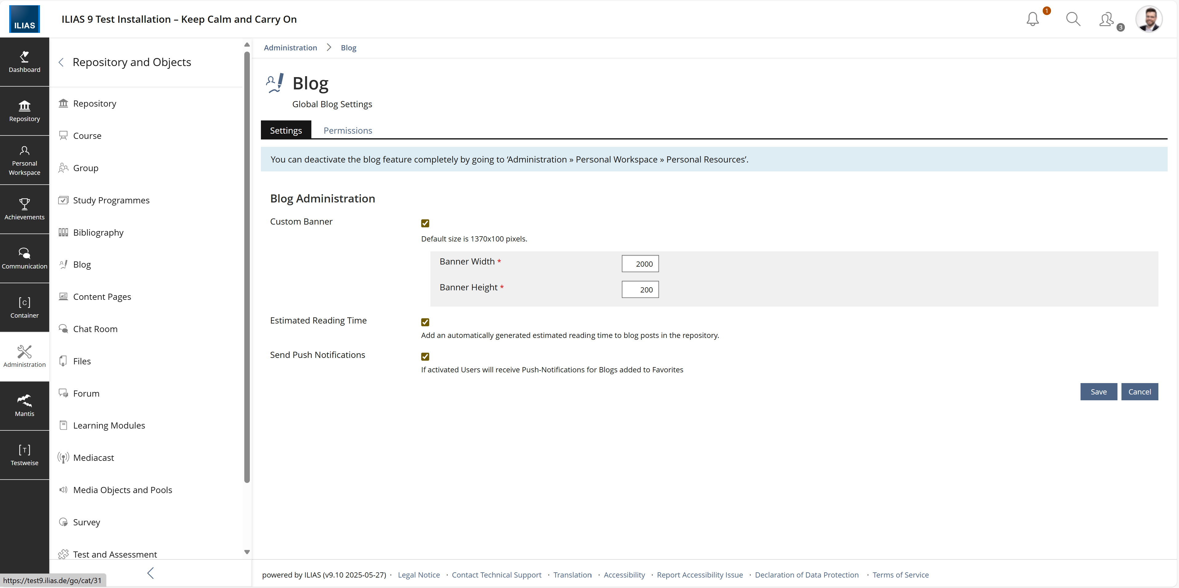 At the Bottom a new Option Send Push Notifications shall be displayed. By activating the Checkbox Push-Notifications will be available for all Blogs.