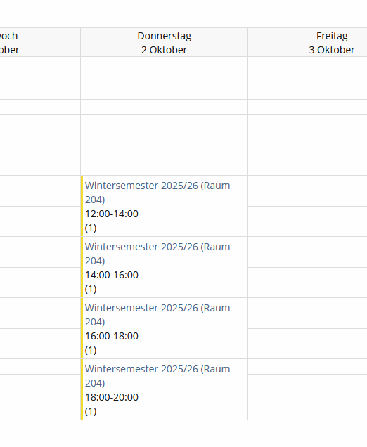 ILIAS returns to the booking pool's start page after each booking, and each additional time slot must be booked separately.