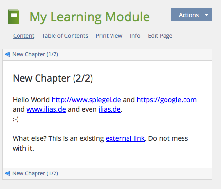 I suggest to improve the usability of the page editor and to support also a simple http://www.ilias.de link as a clickable link without adding xln tags.