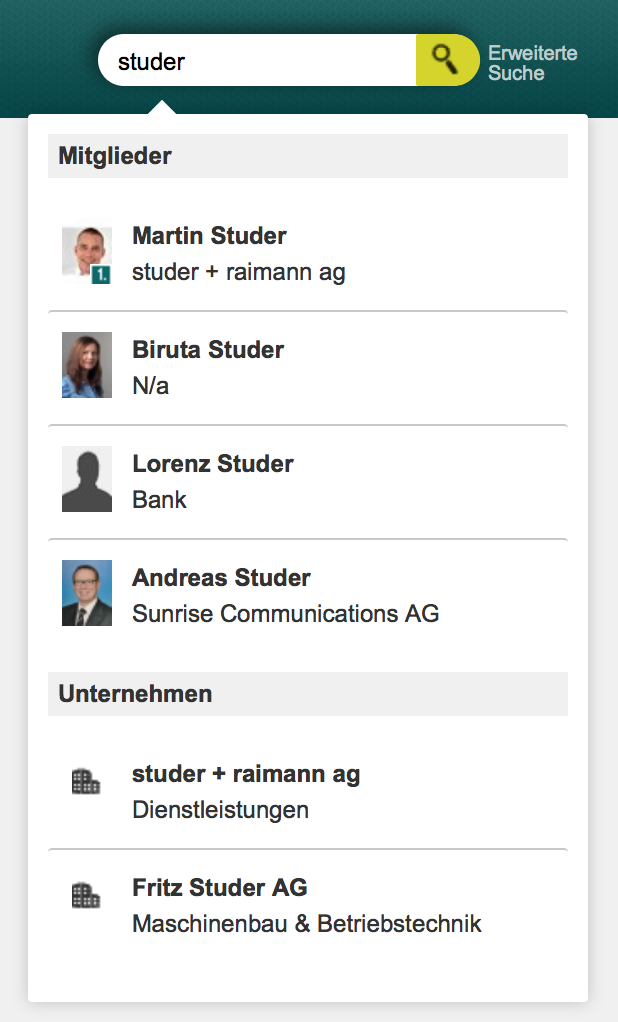 Autocomplete in member search
